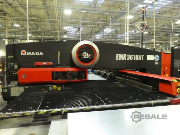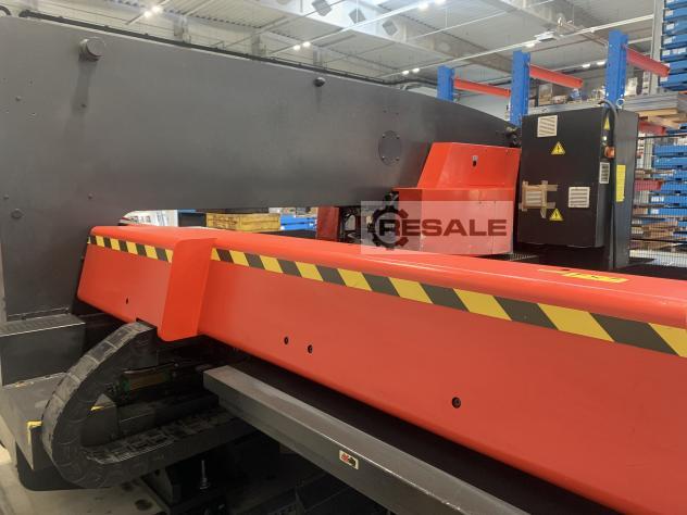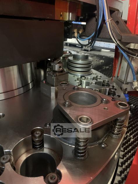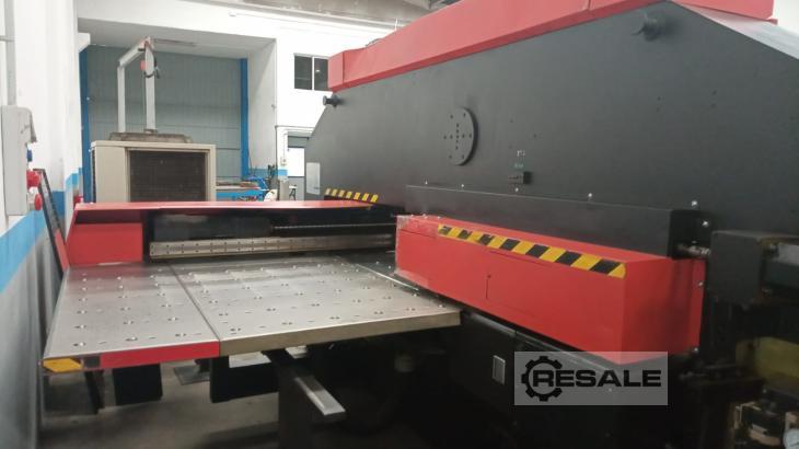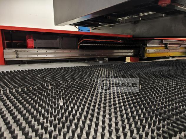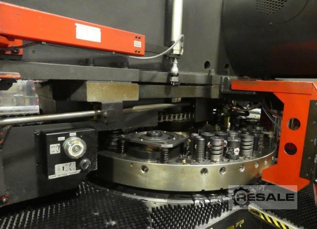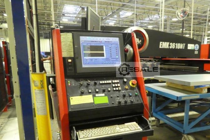 Máquina perforadora servoeléctrica AMADA EMK 3610 NT Fuerza de punzonado 300 kN Rango de trabajo: 2500 (hasta 5000 mm) x 1525 mm AMNC F Control Espesor máximo de la hoja 4,5 mm Revólver con 58 estaciones: 24 x A (diámetro máximo 12,7 mm) 24 x W (máx. 31,7 mm) 4 x C (diámetro máximo 50,8 mm) 2 x D (máx. 88,9 mm) Indización automática: 2 x W (diámetro máximo 31,7 mm) 2 x E (diámetro máximo 50,8 mm) Dimensiones de la máquina LxWxH: 5430 mm x 5120 mm x 2320 mm Peso de la máquina 24500 kg