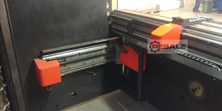 Fuerza nominal 2200 Kn Longitud máxima de flexión 3340 mm Longitud de la mesa 3220 mm Ancho de mesa 180 mm Altura de la mesa 960 mm Paso entre la barra de prensa 450 mm Trazo 180 mm Extensión 410 mm Distancia entre soportes 2700 mm Max Print 292 Bar Número de cilindros 2 piezas Capacidad de aceite 190 litros Potencia del motor 15 kW Velocidad máxima de entrega 100 mm/s Velocidad de trabajo 1 - 7,5 mm/s Velocidad de carrera 1 - 75 mm/s Altura total con NC 2990 mm Longitud total con NC 3750 mm Ancho total con NC 2200 mm y cortina de luz 250 mm Peso total con NC 12500 kg Sistema de flexión Amada Longitud 3750 mm Profundidad 2200 mm Altura 2940 mm