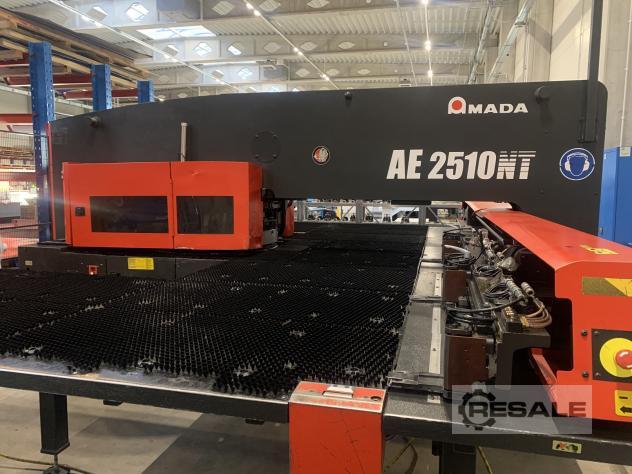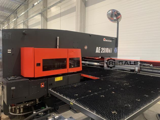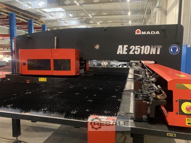Máquina de punzonado y mordisqueo / prensa perforadora AMADA AE 2510 NT Año de construcción / año de manuf. 2011 CNC AMNC Rango de trabajo 1270mm x 2500mm (máx. 5000mm con restablecimiento / con reposición) Revólver: 51 estaciones incl. 4 rotables / índice Diámetro máximo de la herramienta / diámetro máximo de la herramienta 88,9 mm Tablas de pinceles / tablas de pinceles Accionamiento servoeléctrico / unidades servoeléctricas Máximo 900 visitas por minuto