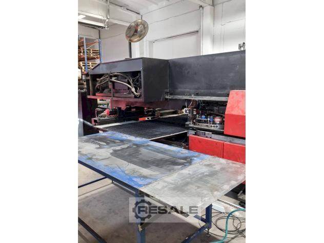 La prensa de torreta AMADA EUROPE 245 fue producida en 2000 (instalación de la máquina: 2001). El precio de la máquina incluye: instalación y formación en el uso de la máquina Datos técnicos de la máquina perforadora: - Control CNC: FANUC 18 i-P - Tiempo de trabajo: 35.000 h - Presión: 20 t - Mesa de trabajo: X a 600, Y a 400 - formato máximo de punzonado sin interceptar y con cabezal de 31 estaciones: 1020 x 1290 (Y-10; Y1010 T2XX; Y-50; Y970 T3XX) - tamaño máximo de una lámina perforada con interceptación: 1020 x 2540 mm - Tamaño máximo de la hoja a perforar con la intercepción + 1 revolución (opcional): 1500 x 2540 mm - Espesor máximo de la hoja en la mesa de bolas: 6 mm - Espesor máximo de la hoja en la tabla de cepillos: 3 mm - Peso máximo permitido sobre la mesa: 100 kg - Precisión de punzonado: + -0,1 mm - precisión de posicionamiento: + -0 ...