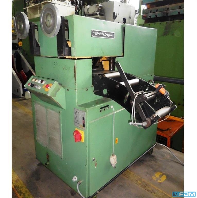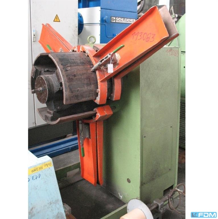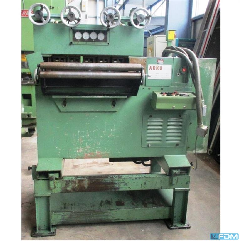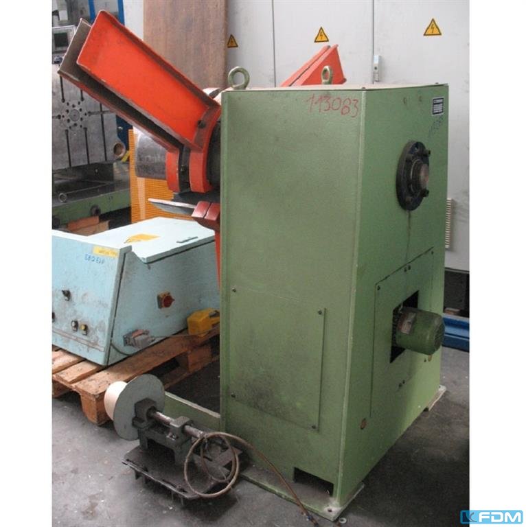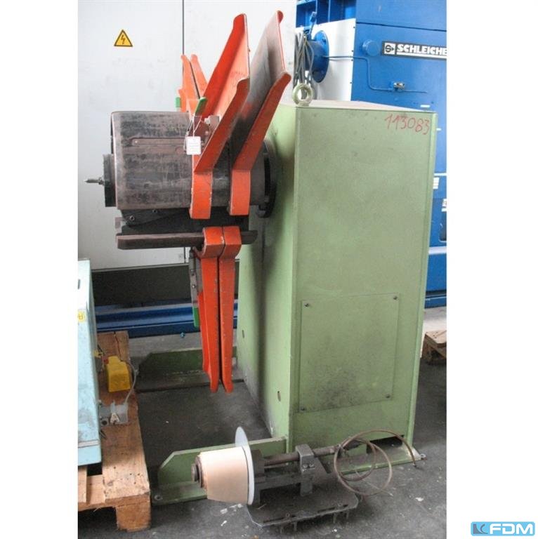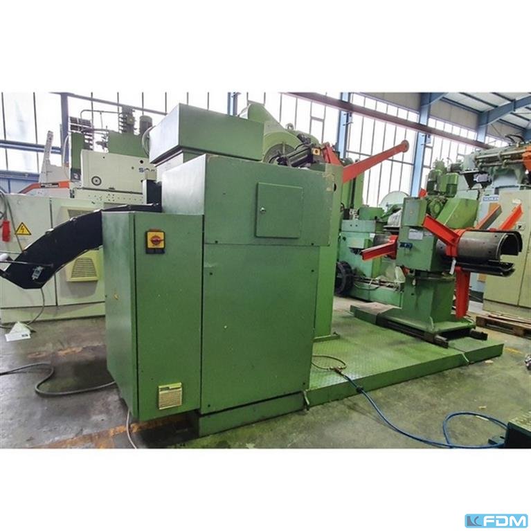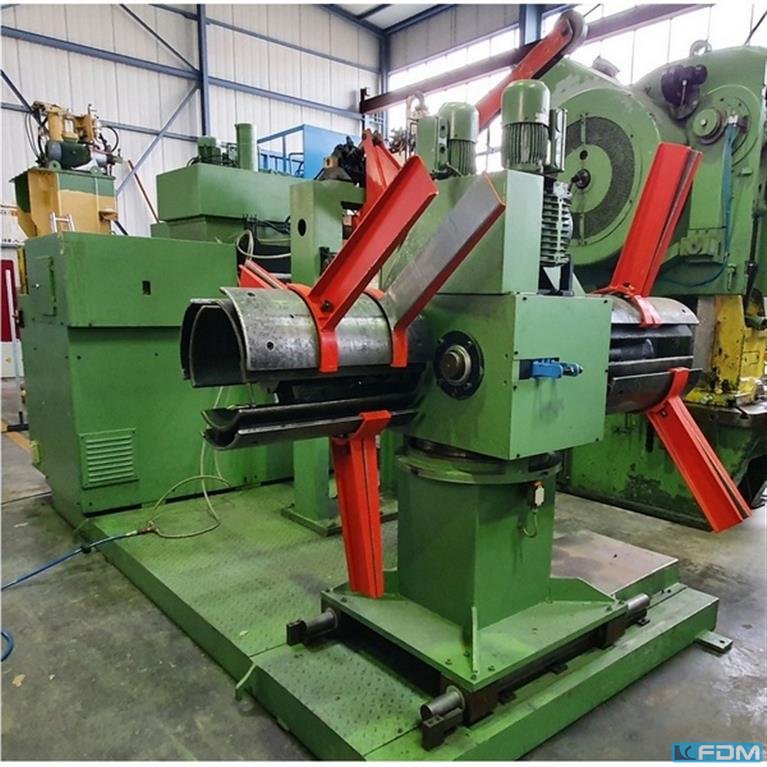 Ancho de la chapa - máx.: 0350 mm Peso de la bobina: 2,00 t Diámetro interno de la bobina: 470 - 530 mm Diámetro exterior de la bobina - diámetro aprox.: 1500 mm Potencia total requerida: 1,0 kW Peso de la máquina aprox.: 1,50 t Dimensiones de la máquina aprox.: 1,30 x 1,6 x 1,90 m accionado por motor, con esparcimiento central manual