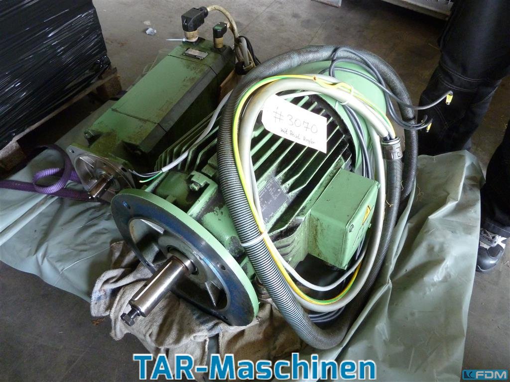 electric motor, three-phase motor -Spare part: of a CNC lathe -Power: 11/15 kW -Speed: 1460/2900 rpm -with electric clutch: 24 V and V-belt pulley -Design: B5 -Protection class: IP 44 -Dimensions: 820/440/H320 mm -Weight: 180 kg