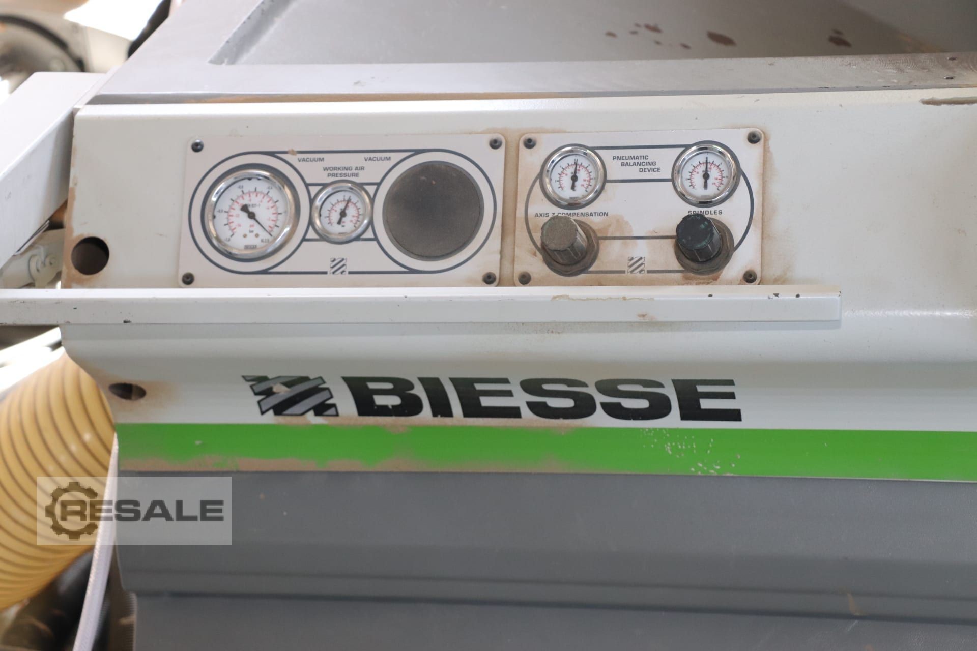 SPECIFICATIONS: Workspace: X: 3060 mm Y: 1260 mm Z: 150 mm 03 Axles Automatic lubrication system 06 ATS tables (length: 1200 mm) 018 Track rollers 06 rear stops 06 stops at height 970 mm Side stops (2 right + 2 left) 04 Bar lifter Turret tool magazine with 10 places 01 Drill head BH 21 L (7x+7y vertical - 4x+2y horizontal - x-axis knife) 01 Air Cooled 12kw Electrospindle HSK F63 Coupling 01 Becker vacuum pump: 100 m³ SYSTEM: Biesse Works XP600 Controller EQUIPMENT: Carpets and barriers Various tools