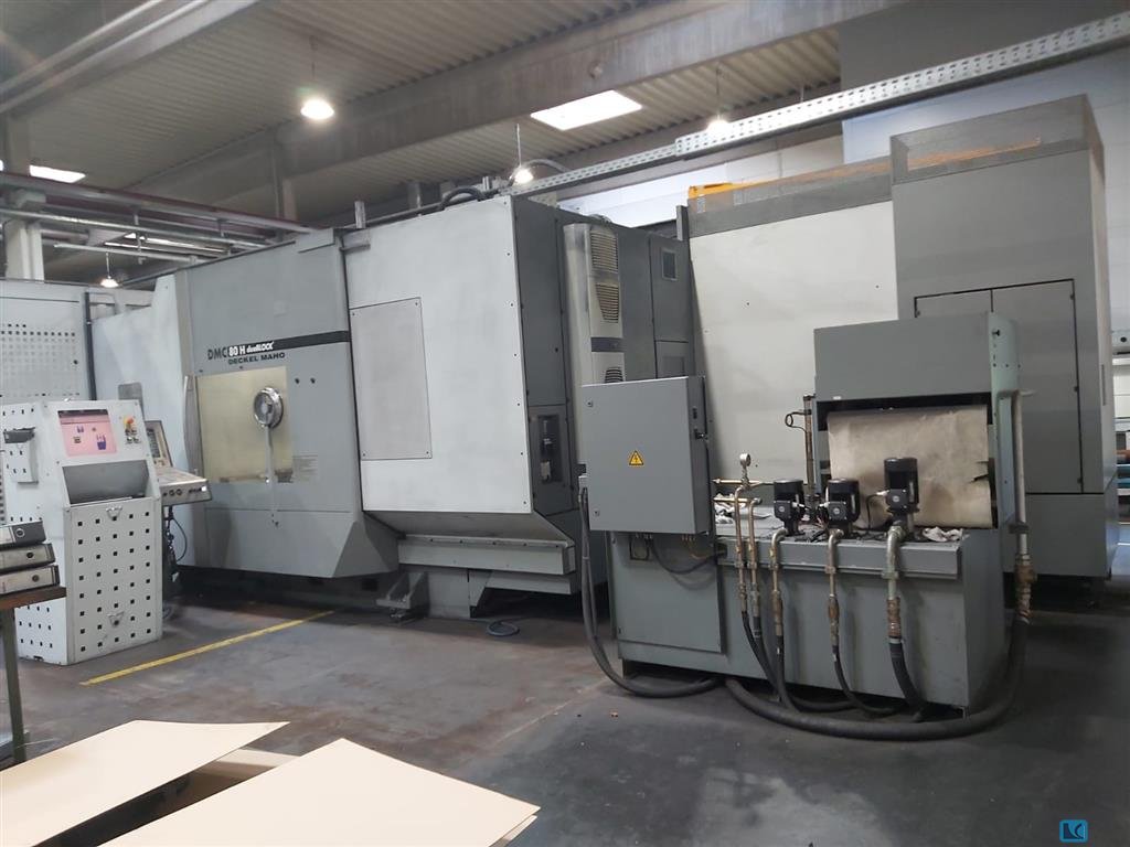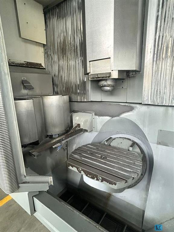 x-travel:1250 mm y-travel:880 mm z-travel:800 mm control: Heidenhain TNC 430 tool change unit:60 Pos. Tool bore:SK 50 turning speeds:8000 1/min size of pallet:1000 x 800 mm total power requirement:56 kVA weight of the machine ca.:14,3 t dimensions of the machine ca.:5,5 x 3 x 3,1 m 5-axis machine with controlled universal milling head (B-axis), 2-palett changer incl. 2 palets, 1000 x 800 mm Production package: - internal coolant supply 40 bar with 900l coolant box (2,25 x 1.3 x 2,2m / 950kg), - chipconveyor (4,85 x 1,2 x 1,75m / 600kg), - ROTOCLEAR, - 3D touchprobe RENISHAW MP 10 - 60 pos. ATC SK 50 - el. handwheel - mech. tool-breakage control, accessories (SK 50 toolholders approx. 100.200 h "machine on", approx. 52.200 h "spindle on", last spindle change in 2020