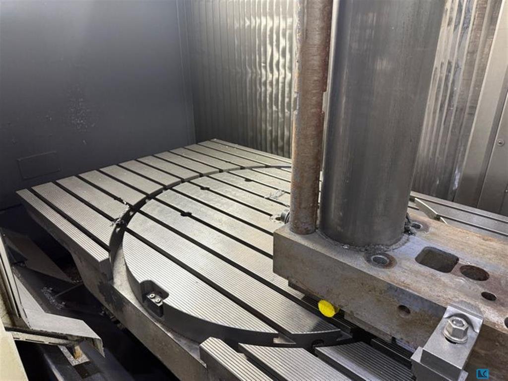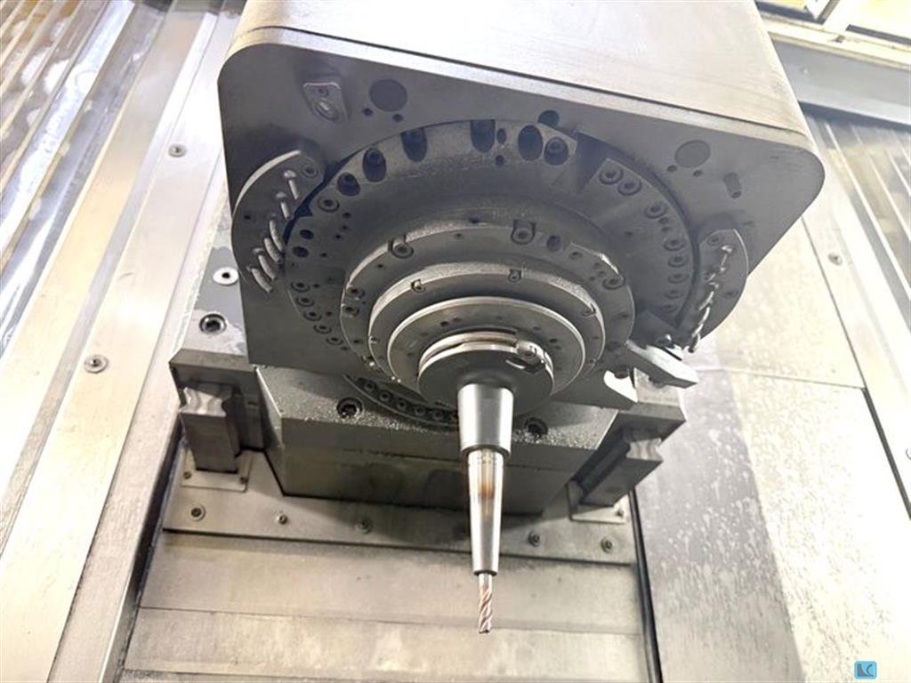 x-travel:2600 mm y-travel:1100 mm z-travel:900 mm table surface area:3200 x 1100 mm rotary table diameter:1050 mm table load:1,2 t control:Heidenhain iTNC 530 ergoline 19" turning speeds:20 - 10.000 1/min taper ISO:SK 50 max. torque on the spindle:288 / 187 Nm tool change unit:60 Pos. rapid traverse:40 m/min spindle:44 / 32 kW weight of the machine ca.:25 t dimensions of the machine ca.:6,70 x 3,40 x 2,95 m 5-axis universal machining center, rigid table with integrated NC-rotary table left side and B-axis in milling head, direct measuring system, internal Coolant 40 bar, coolant tank 600 l, Swarf Conveyer Rotoclear airblast through spindle, 3D Touch probe HEIDENHAIN TS 649, mode 4, prepared for 3D quick set (software yes, hardware no), new milling spindle in 2022 at 25.584h approx. 60.000 h machine ON, approx. 31.000 h Programm ON in total