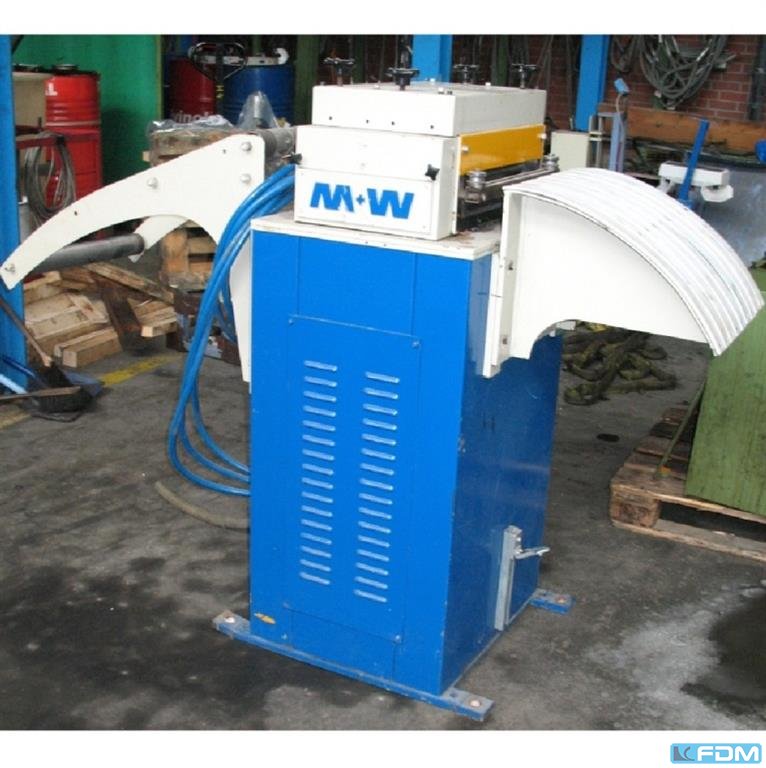sheet width - max.: 0410 mm coil weight: 2,0 t coil internal dia.: 380 - 520 mm coil outside - diam. ca.: 1400 mm total power requirement: 2,2 + 1,1 to kW weight of the machine ca.: t dimensions of the machine ca.: m with take-off device Space requirement reel (W x D x H) 1.40 x 1.60 x 2.20 m Space requirement complete (W x D x H) 2.60 x 1.20 x 2.30 m Unwind reel 2370 DFPS without drive, with pneumatic overrun brake, hydraulic central spreader, pneumatic pressing device Take-off device / hydraulic threading aid 235 D with infinitely variable drive, belt loop control via ultrasound Material thickness up to approx. 6.0 mm Take-off roller diameter approx. 160 mm As it stands and lies, WITHOUT being put into operation, Design as described in the technical data sheet The data for this ad was created with ModulMWS - the software solution of LogoTech oHG.