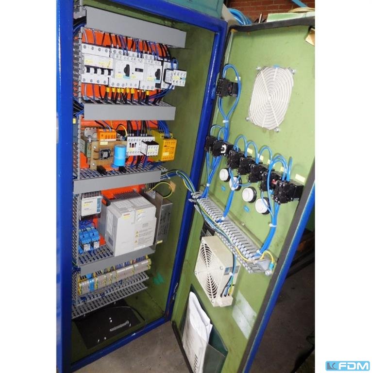 sheet width: 0400 mm coil outside dia.: 1400 mm weight max. in kg: 3000 kg plate thickness: 0,80 - 4,50 mm nomb. of straightening rolls: 7 diam. of the rolls ca.: 80 mm feed rolls: 2 exit pinch rolls: 2 coil width: 600 mm range of expansion ca.: 470 - 530 mm total power requirement: kW weight of the machine ca.: t dimensions of the machine ca.: m Decoiler DIMECO type 2371 E-FPS Year of construction 2006 with hydraulic spreading with pneumatic pressure roller from above with 6 pieces of band limiting arms Straightening machine DIMECO type 1676 C-VV Year of construction 2000 with frequency-controlled drive with hydraulic band insertion aid with support table, insertion tongue, Pressing arm from above with pneumatically ventilated roller with side belt guide rollers with pneumatically adjustable belt transfer table The data for this ad was created with ModulMWS - the software solution of ...