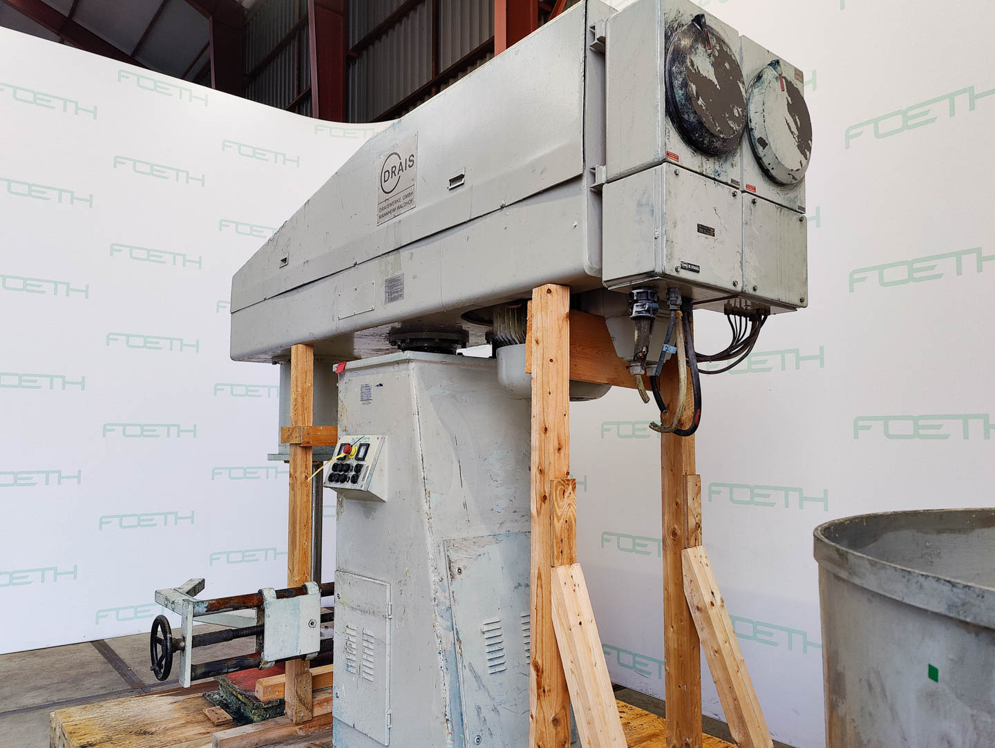 General SKU355W950 LocationBarneveld MakeDraiswerke TypeRN 3-36 Main Features MaterialStainless steel Volume2500 Ltr. Motor36 KW Specified Features - Dissolver Dissolvercheck Shaft length1000 mm Disc diameter500 mm Between shaft and frame730 mm Hydraulic drive150 bar Motor36 kW, (380 V, 1425 rpm (Ex)) With pans1 Capacity2155 l Pan sizesdia. 1400x1400 mm OutletDia. 45 mm With hydraulic liftingcheck Motor1kW, 230/400V, 1415 rpm (EX) MaterialChromed steel, Stainless steel 1.4301 (304), Stainless steel 1.4571 (316Ti) Information No.51765 Year of construction1984 With switchcheck Floorspace2,0 x 3,40 m Total height2,70 m Weight3900 kg ATEX compatiblecheck Extra Specificationsdisk material: chrome. shaft material: stainless steel 316TI vessel material: stainless steel 304 DissolversCatalysts & fillersSolventsDetergent & surf.Other pharmaceuticsLubricants & oleoO ...