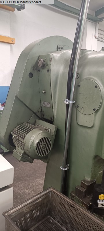EBU 80 – Single-column eccentric press – Year of construction 1971 • Manufacturer: EBU Pressen • Machine type: Single-column eccentric press • Type: EBU 80 • Year of construction: 1971 • Machine number: 293 • Press force: 80 t (at 30° before subtitles) • Adjustable stroke: 12–60 mm • Plunger adjustment: 80 mm • Plunger stroke rate: 37–147 strokes/min • Weight: approx. 5,200 kg Dimensions (approx.) • Height: 2,500 mm • Width: 1,500 mm • Depth: 1,800 mm Equipment & Design • Mechanical eccentric press in heavy casting design • Large work table with T-slots • Adjustable stroke • Pneumatic unit with pressure regulator and pressure gauge • Side-mounted control cabinet with controls • Flywheel with protective cover • Tool holder on the ram Condition • Used machine • Signs of wear and tear due to age and use • Paint chipping and dirt ...
