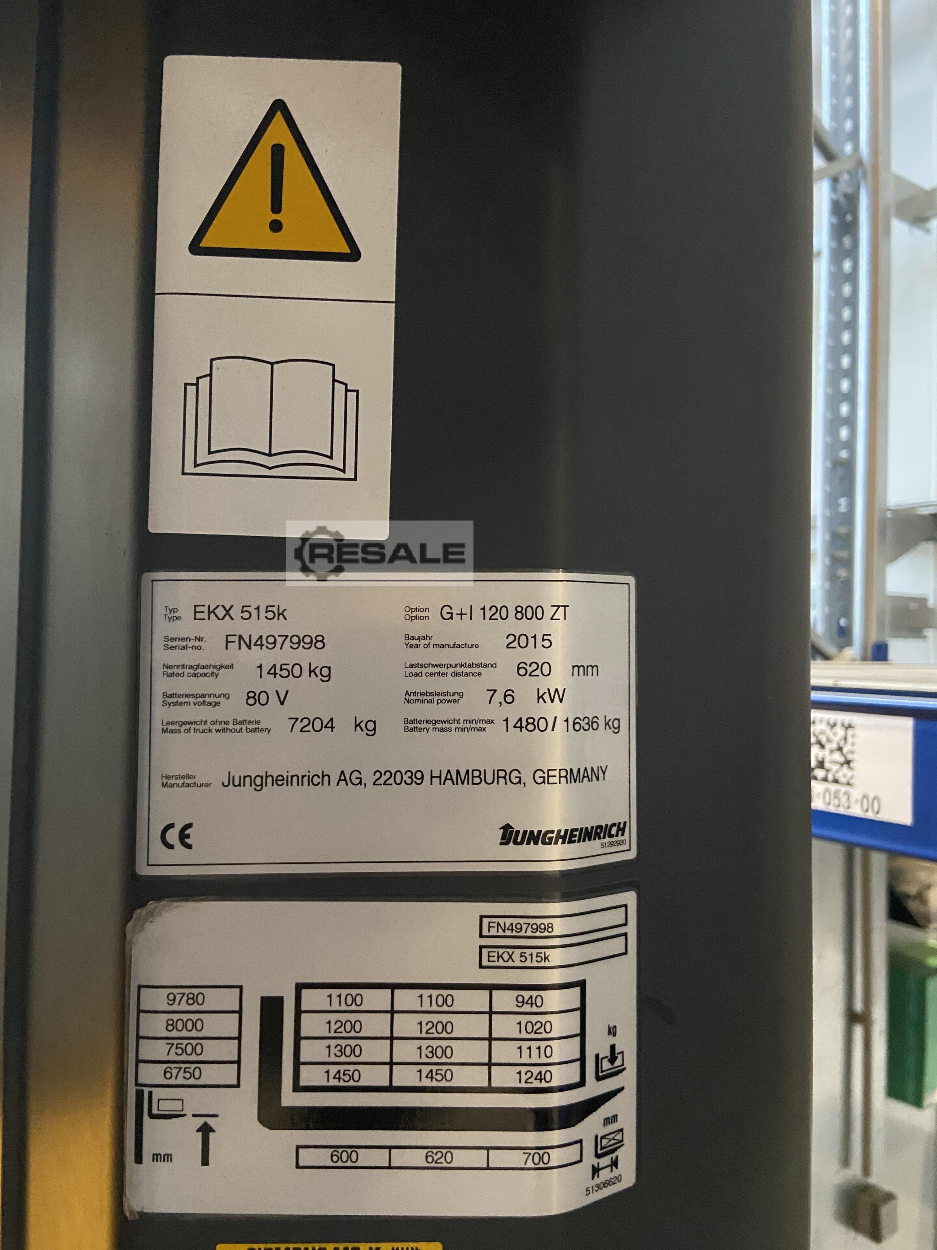 515k / EKX 516k, lifting height 9.78m, 1.45 to 1.6 to load capacity