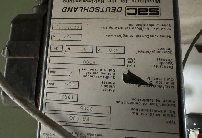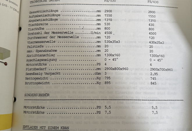 Type of machine: surface planer