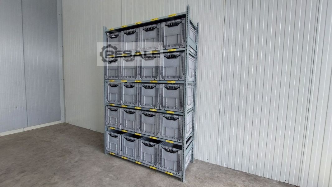 Complete storage solution including stage, shelving system and layout – ready for immediate use For sale is a complete storage system of the company ELVEDI (model RX 25) with two levels, ideal for logistics, wholesale or e-commerce. The facility is currently constructed, fully functional and can be taken over and used immediately. Technical data: >Total area: 537.5 m² > levels: 2 (ground floor + mezzanine) > shelves in total: 490 pieces >Ground floor: 262 shelves > floor: 228 shelves >approx. 1,200 shelf compartments >additional approx. 200 spare shelf parts > shelf width: approx. 1000 mm > Shelf Height: >bottom approx. 2200 mm >top approx. 1770 mm > load capacity per floor: approx. 100 kg Construction & Capacity: >Each level consists of several clearly structured aisles > shelves are arranged on both sides of each aisle >each she ...