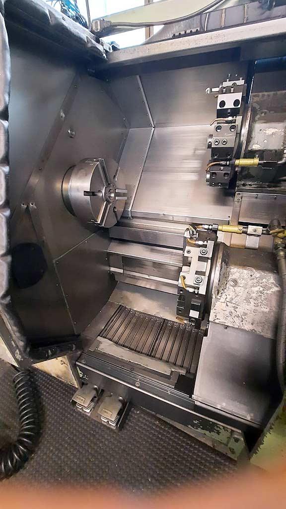 The machine is in good technical condition, after prior agreement it is possible to test it. designed for serial and piece production. It is one of the classic 2-axis CNC lathes (X, Z) with a turret head and is often used in the engineering production of smaller and medium-sized parts. Max. turning diameter: approx. 320 mm Max. turning length: approx. 500 mm Max. diameter above the bed: approx. 500 mm Max. diameter above the slide: approx. 300 mm Spindle Chuck diameter: 210 mm (8") Spindle passage: approx. 52–65 mm Spindle speed: up to 4500 rpm Main motor power: approx. 11–15 kW X-axis: approx. 200 mm Z: approx. 500 mm Rapid traverse: up to 20–24 m/min Turret head 8 or 12 tool positions, possibility of driven tools in the M version Control system Most common: Fanuc 0i-T / Fanuc 21i-T Machine weight approx. 4,000 – 5,000 kg