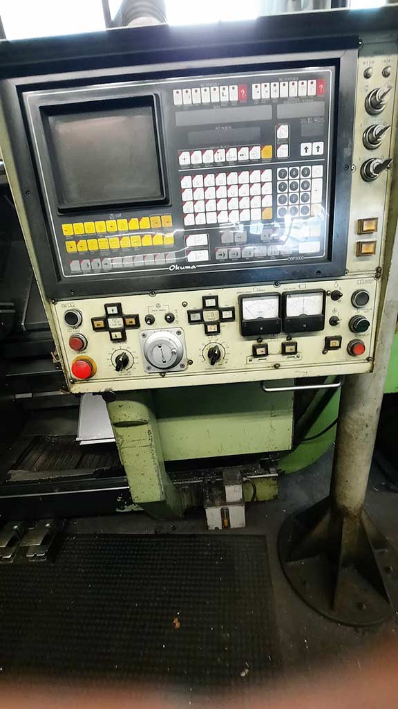 A CNC slant bed lathe Okuma is available. Chuck diameter: 200mm, swing diameter: 400mm, turning diameter: 300mm, turning length: 470mm, tool stations: 8. Machine dimensions X/Y/Z: approx. 4000mm/2150mm/2150mm, weight: approx. 5500kg, control: OSP 3000 L. Documentation available. An on site inspection is possible.