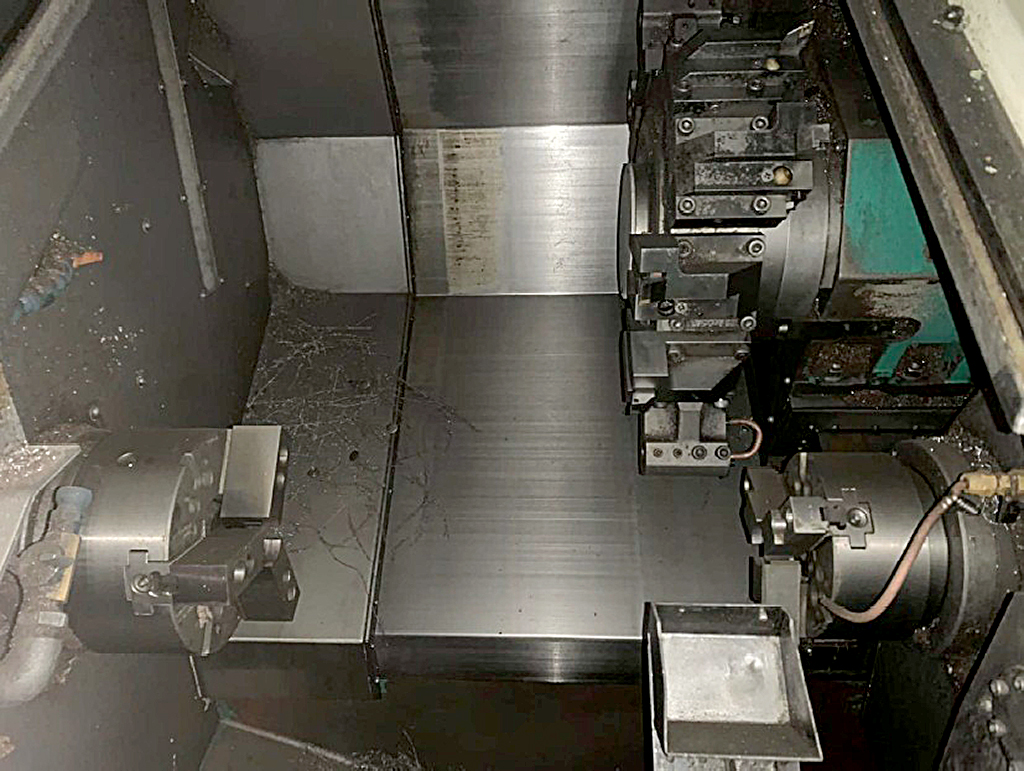 A twin spindle turning center in T2Y2 version is offered. Working area turning diameter/turning length/bar capacity max.: 320mm/810mm/65mm, Speed main and counter spindle: up to 5000rpm, Tool turret: 2x16 stations, Control: MSX-701-III, Installation dimensions L/W/H: approx. 3950mm/2200mm/2350mm, Machine weight: approx. 8300kg. Viewing possible by appointment.