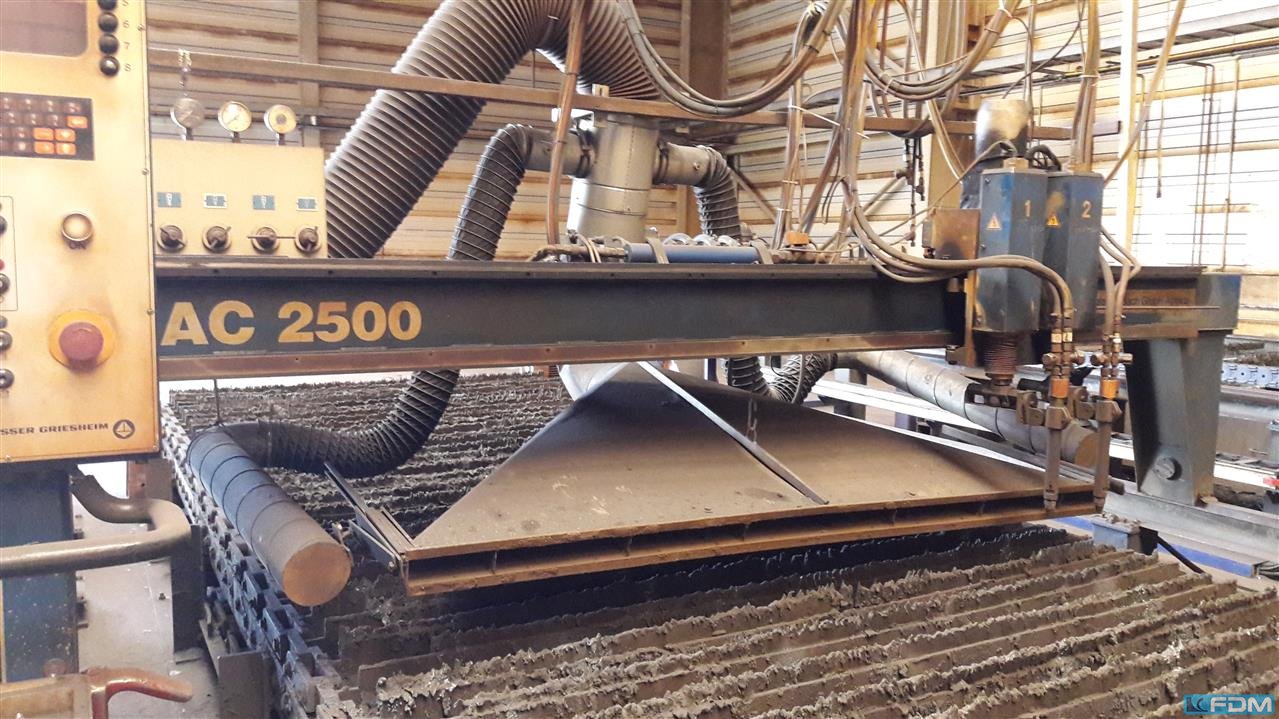 cutting width:2500 mmNumbers of torche:2 Type of gas:Sauerstoff, Propan total power requirement:2 kWlength:6000 mmcontrol:KS 20 A Messer Griesheim Documents:vorhanden