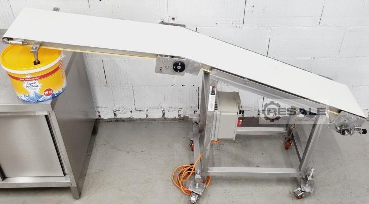 bm TEC Folding Dough Conveyor Belt Belt width 300 mm Belt speed infinitely adjustable Stainless steel version only DGUV V3 tested by us Connection 230 V Used device cleaned & SAB tested