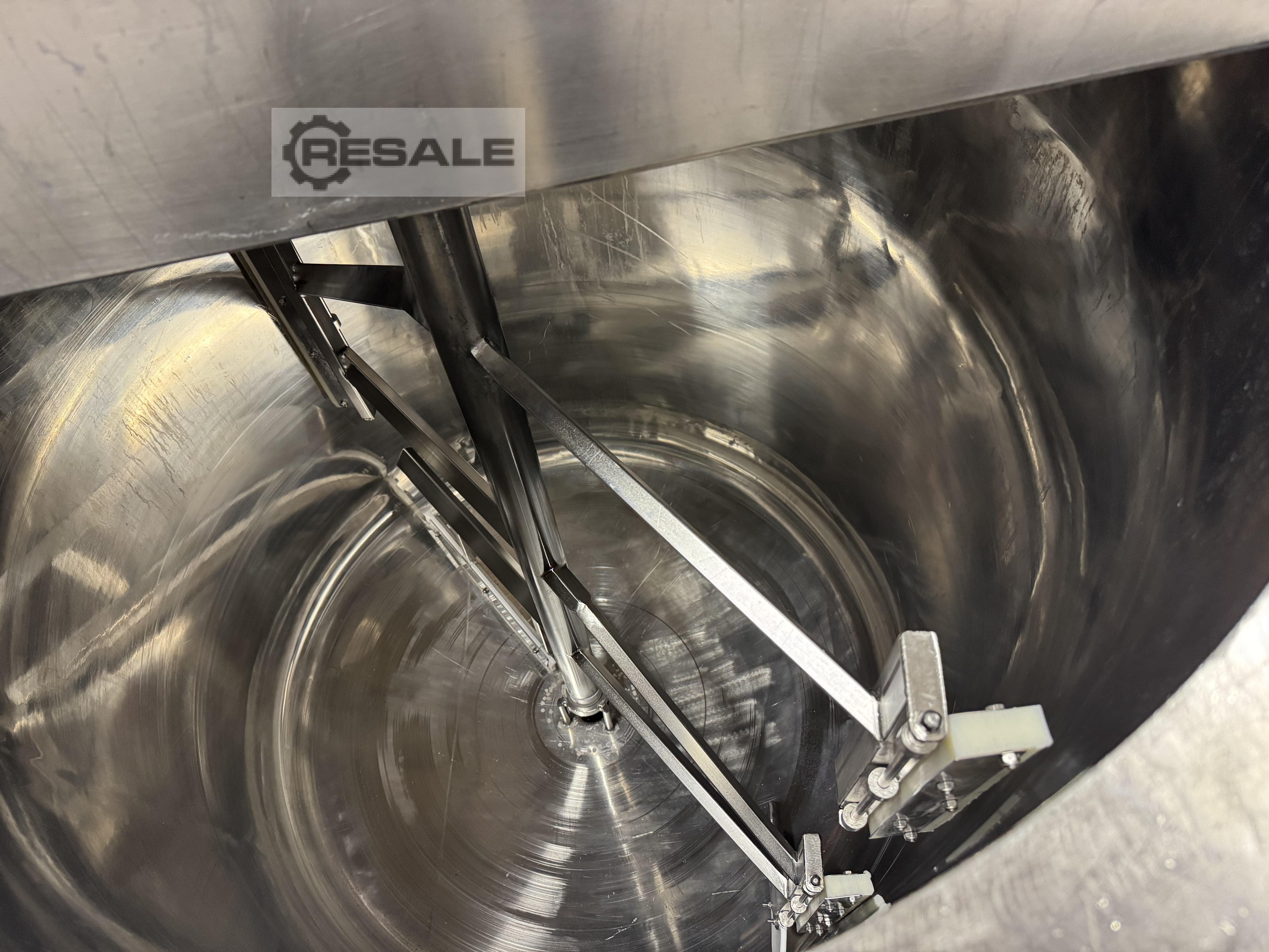 Recipiente de acero inoxidable ATEC 1220 Lr con agitador de ancla con raspadores (5,5 kW), camisa de 250 litros, dos calefactores (2x7,5 kW), entrada/salida DN50, para presión atmosférica, armario de control, agitador controlado por velocidad, sobre ruedas