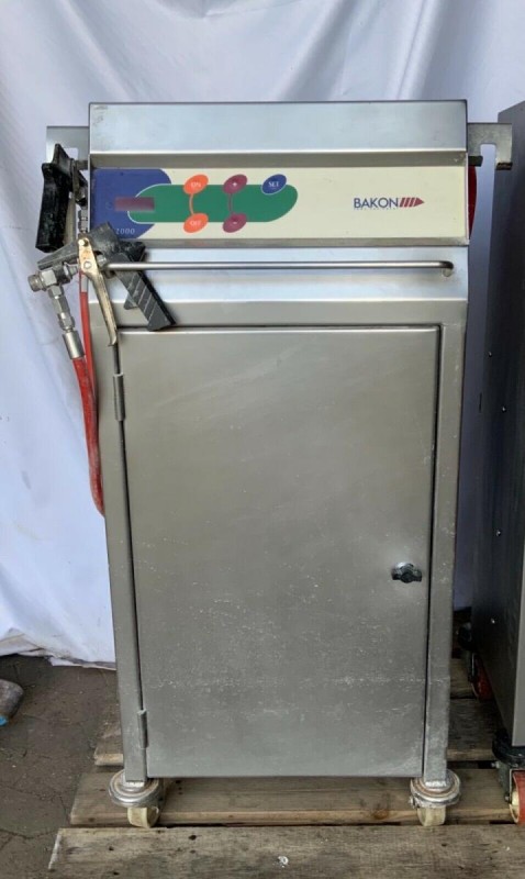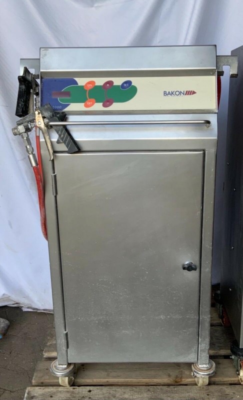 Se utiliza una máquina pulverizadora de gelatina - Fabricante: Bakon - Modelo: Jelly 2000 M (G) - Año de construcción 2004 - Dimensiones exteriores A.: 48 cm, D.: 48 cm, H.: aprox. 110 cm Para más detalles, véanse las fotos.