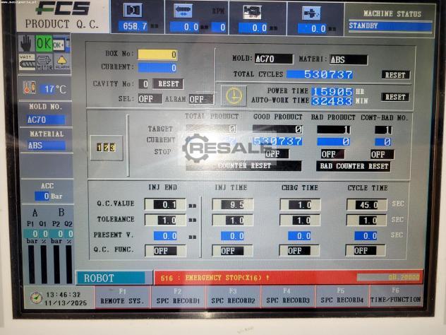 La máquina de moldeo por inyección FCS SD-600MSV fue construida en 2016 en Taiwán por FU CHUN SHIN MACHINERY MANUFACTURE CO., LTD.