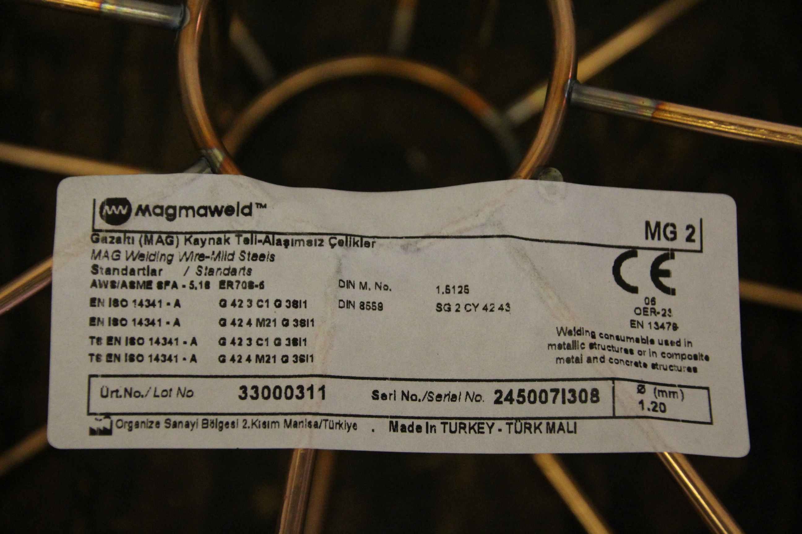 wire electrode, welding wire, welding wire -Manufacturer: Magmaweld, MAG wire electrode SG 2 CY 4243 -Type: MG 2 Ø 1.2mm -Dimension: Ø 300 /100 mm -Weight roll: 15.5 kg -Number: 1 piece available