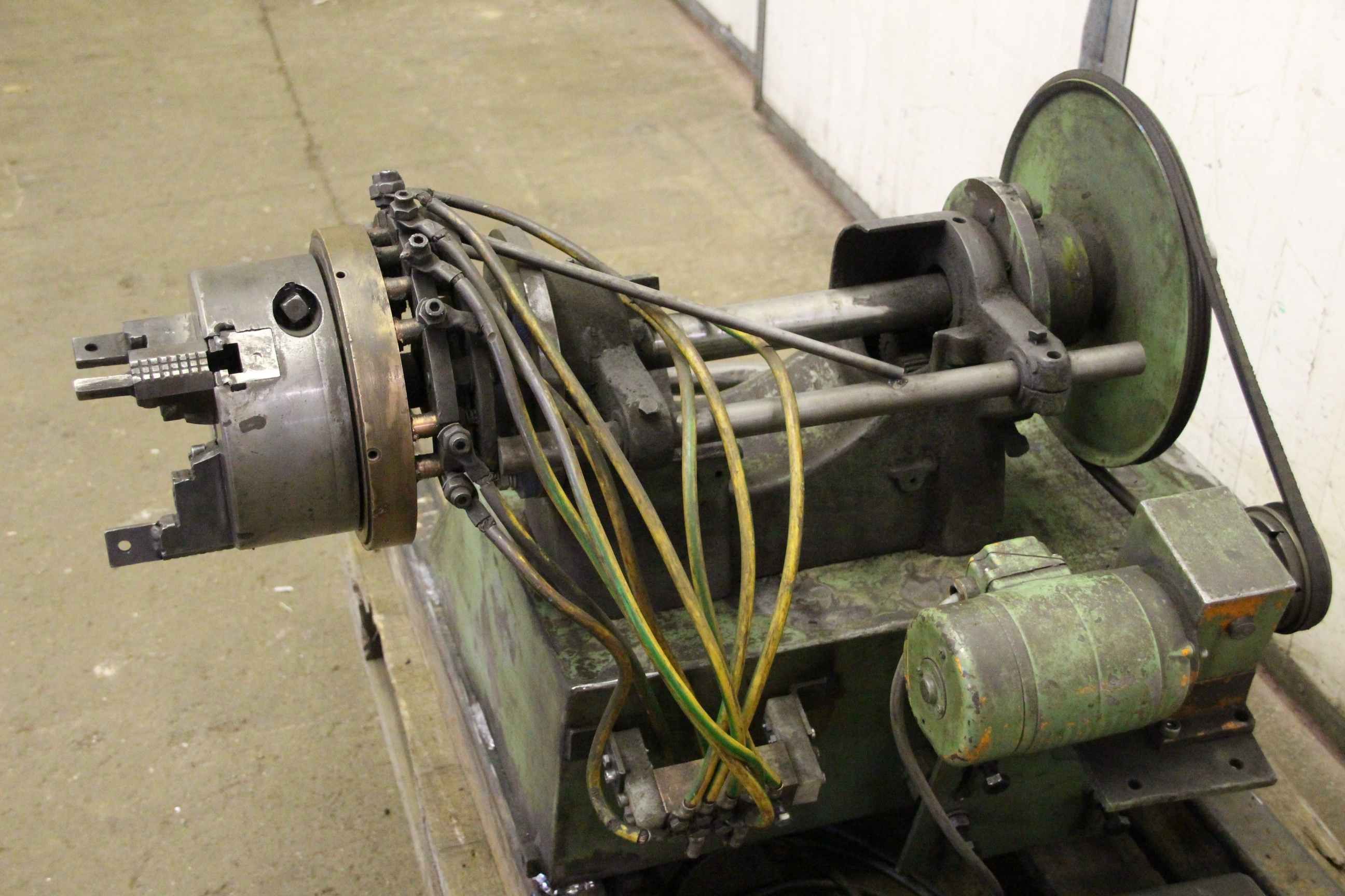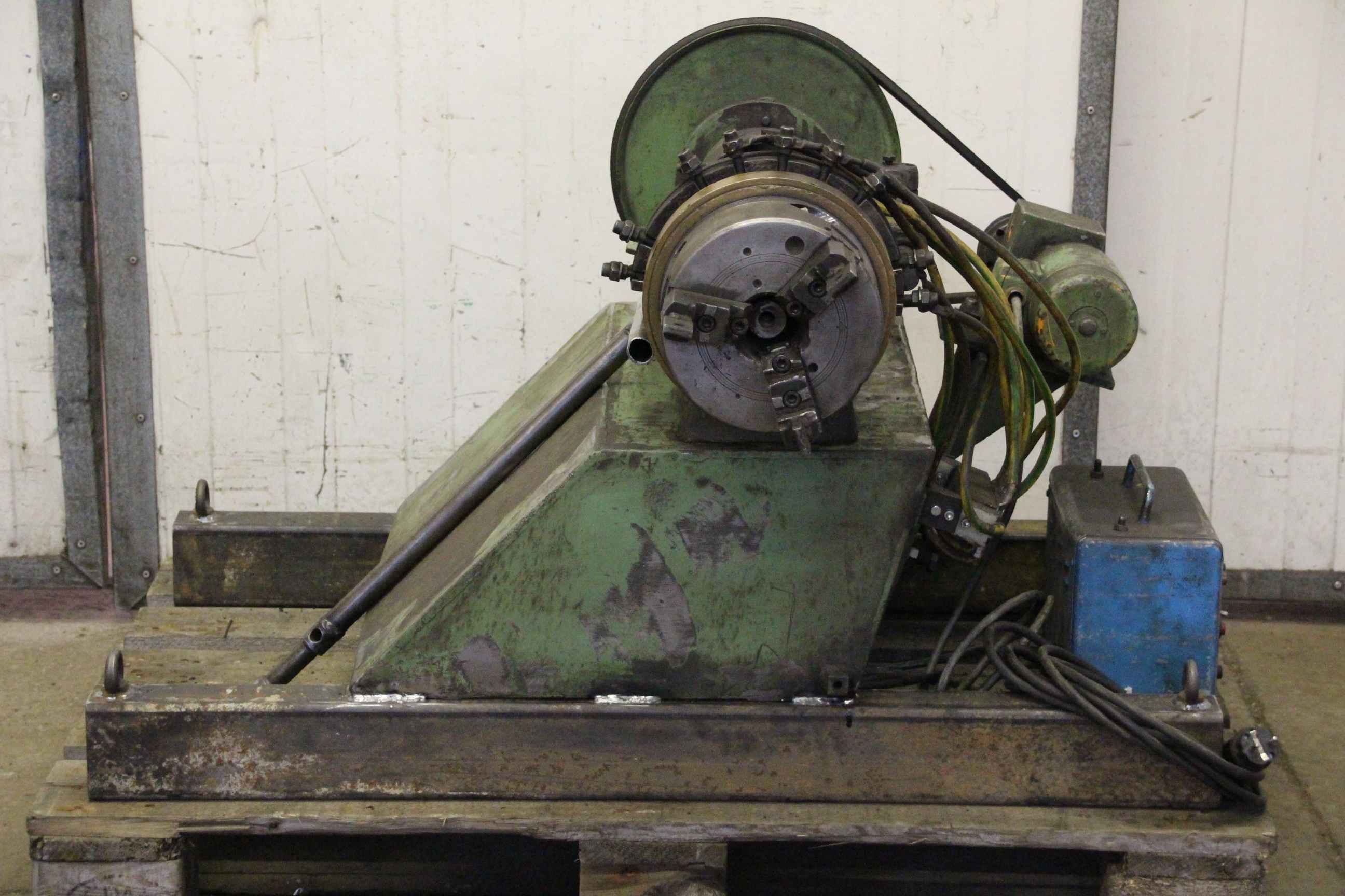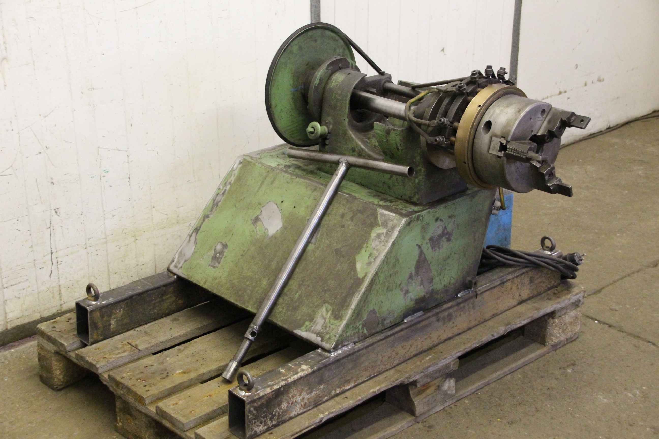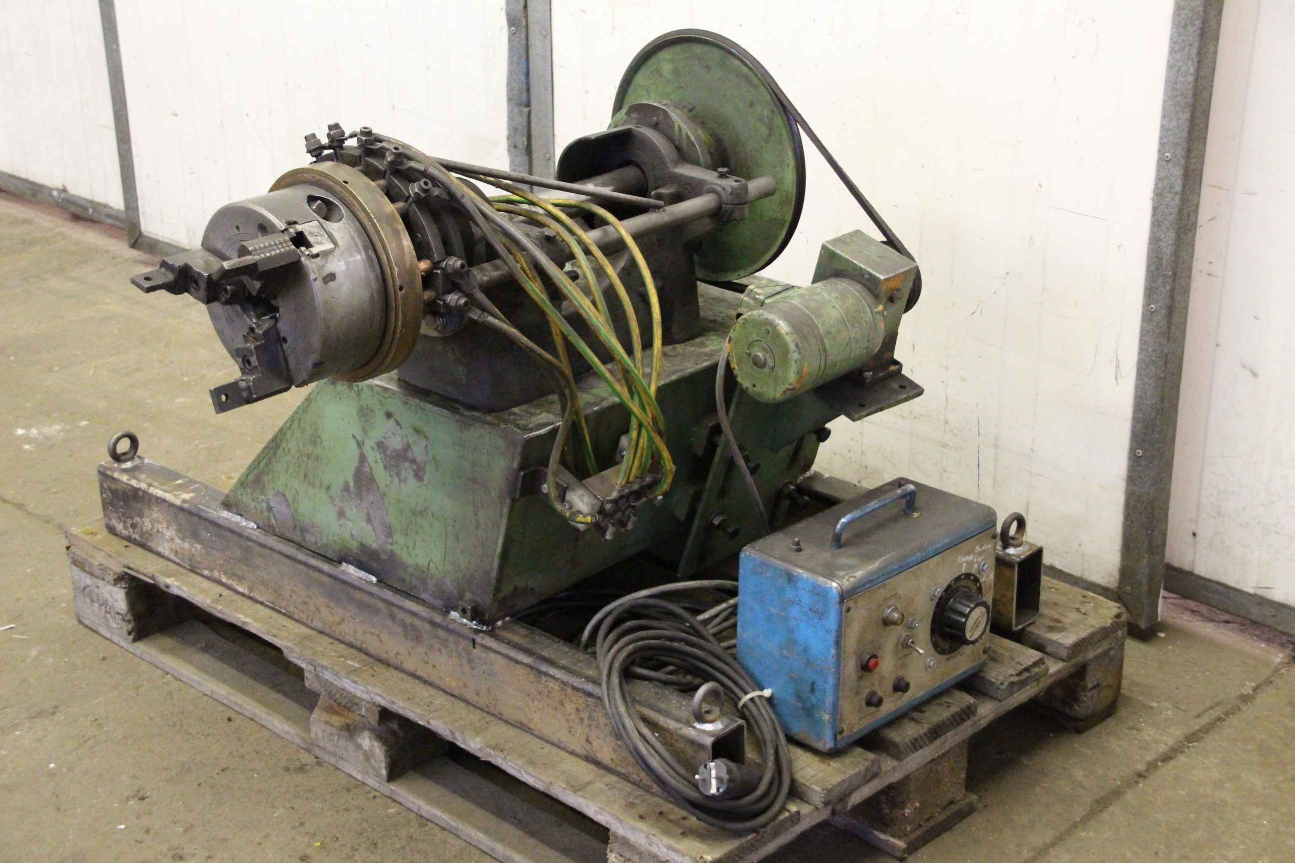 Container turning device, welding turning device, welding turning device, welding device, welding turning table, welding turning and tilting table, welding turning device-Three jaw chuck: Ø 200 mm-Speed: 1/8 to 2 1/4 rpm-Direction of rotation: right/left rotation-Tip height: 535 mm-Dimensions: 925/1100/H700 mm-Weight 188 kg