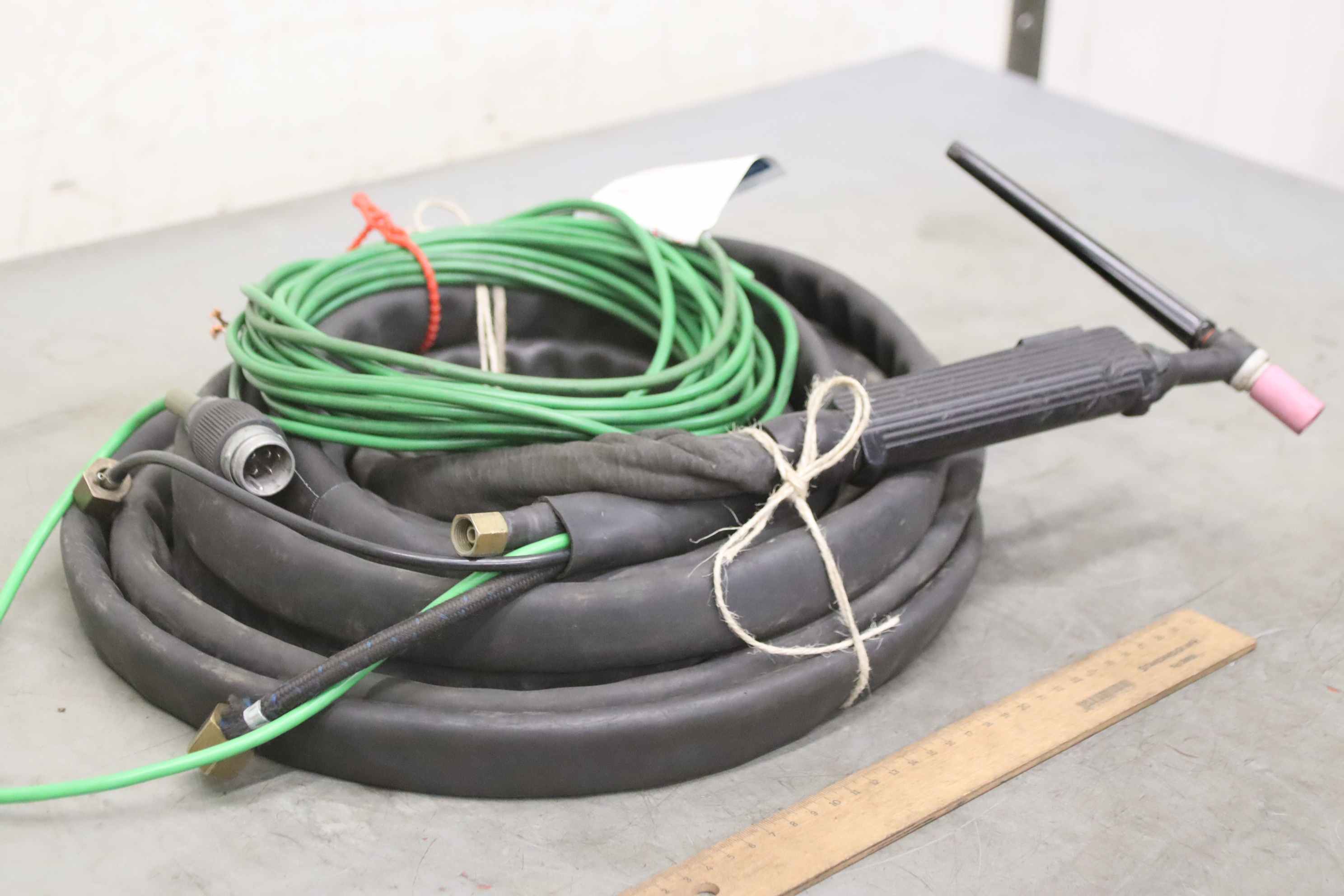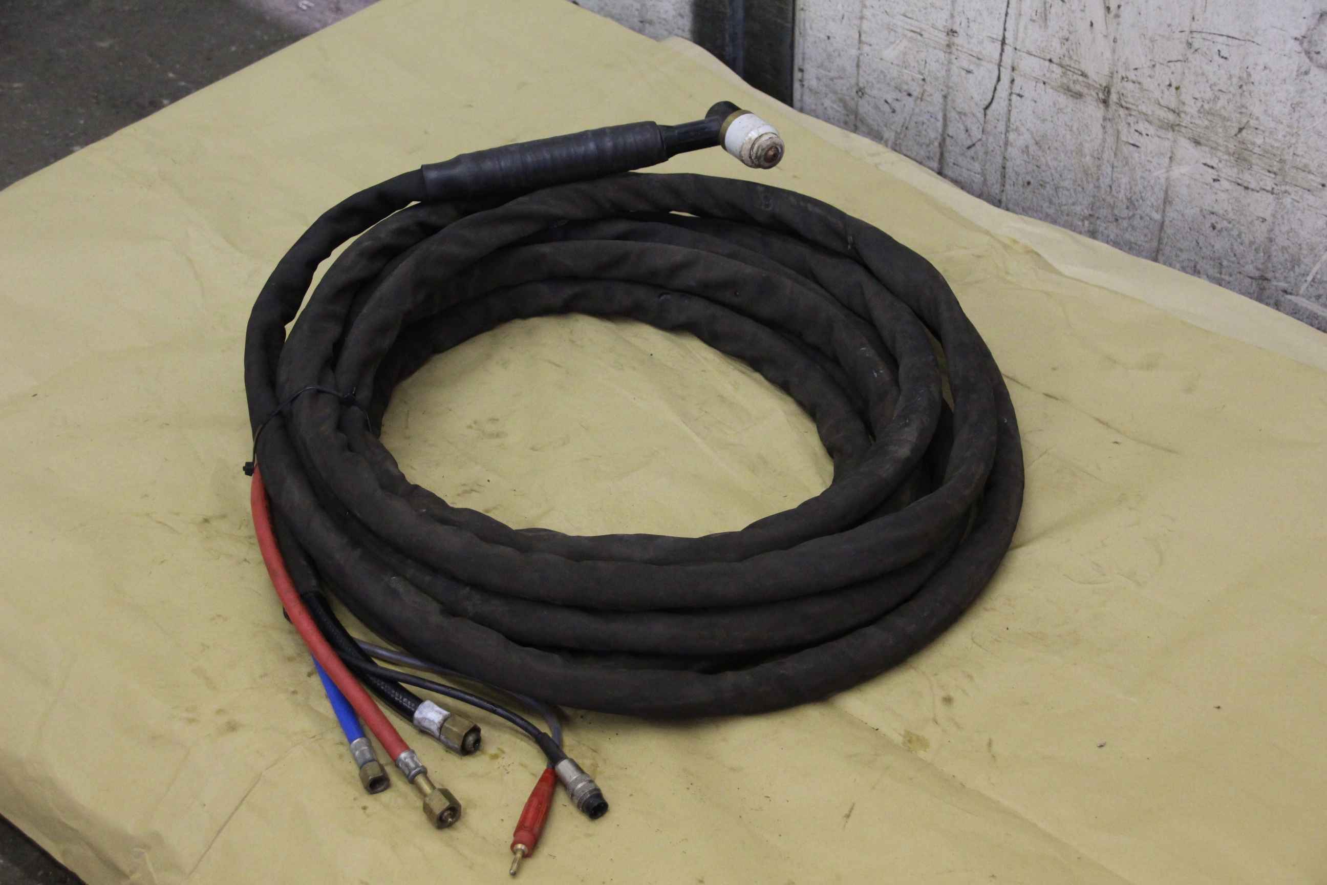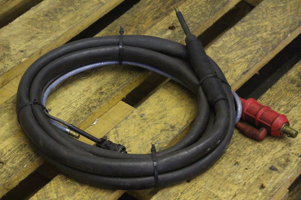 Ground cable for shielding gas device, electrode device -Length: 8 m -Version: Dinse plug, gas hose, control cable, -Cooling: Water-cooled -Weight: 24 kg