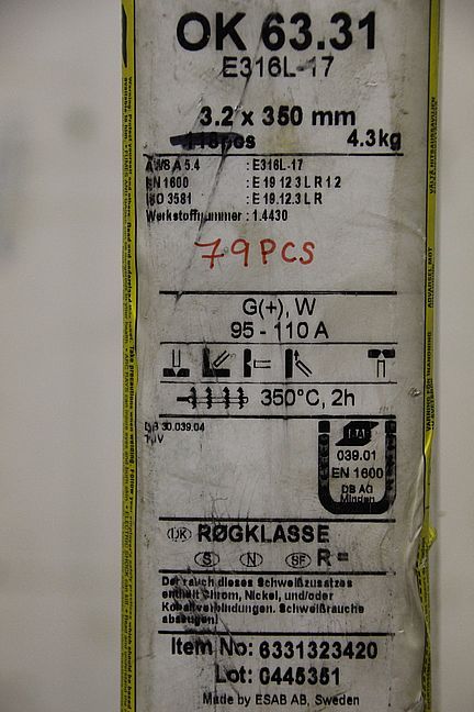 Stick electrodes 3.2 x 350-Type: OK 63.31-Weight: package 3.1 kg/79 pieces-Package: not full