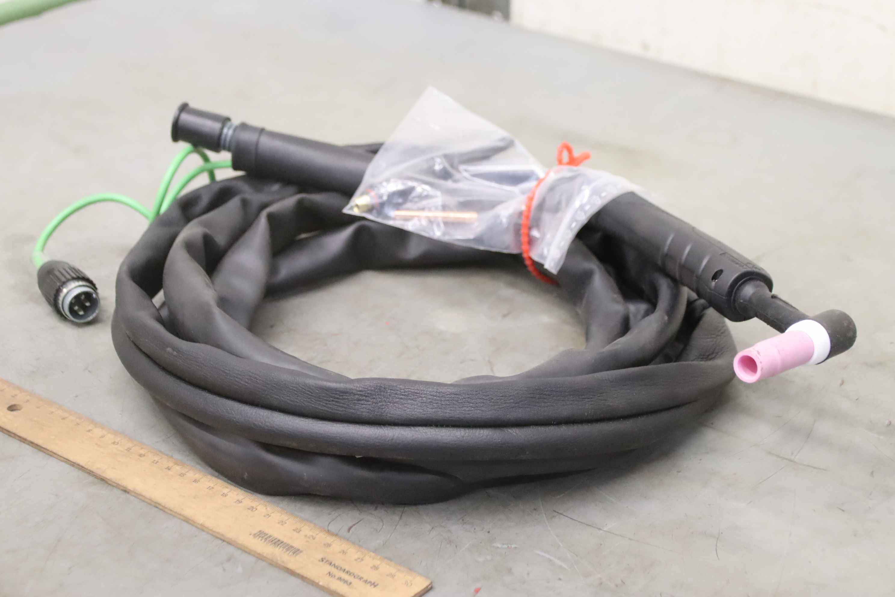 TIG hose assembly, welding torch, hand welding torch, TIG torch -TIG hose package: Torch type SR-20, water-cooled -Length: 7.8 m -Tuchel connector: 5-pin -Weight: 3.6 kg
