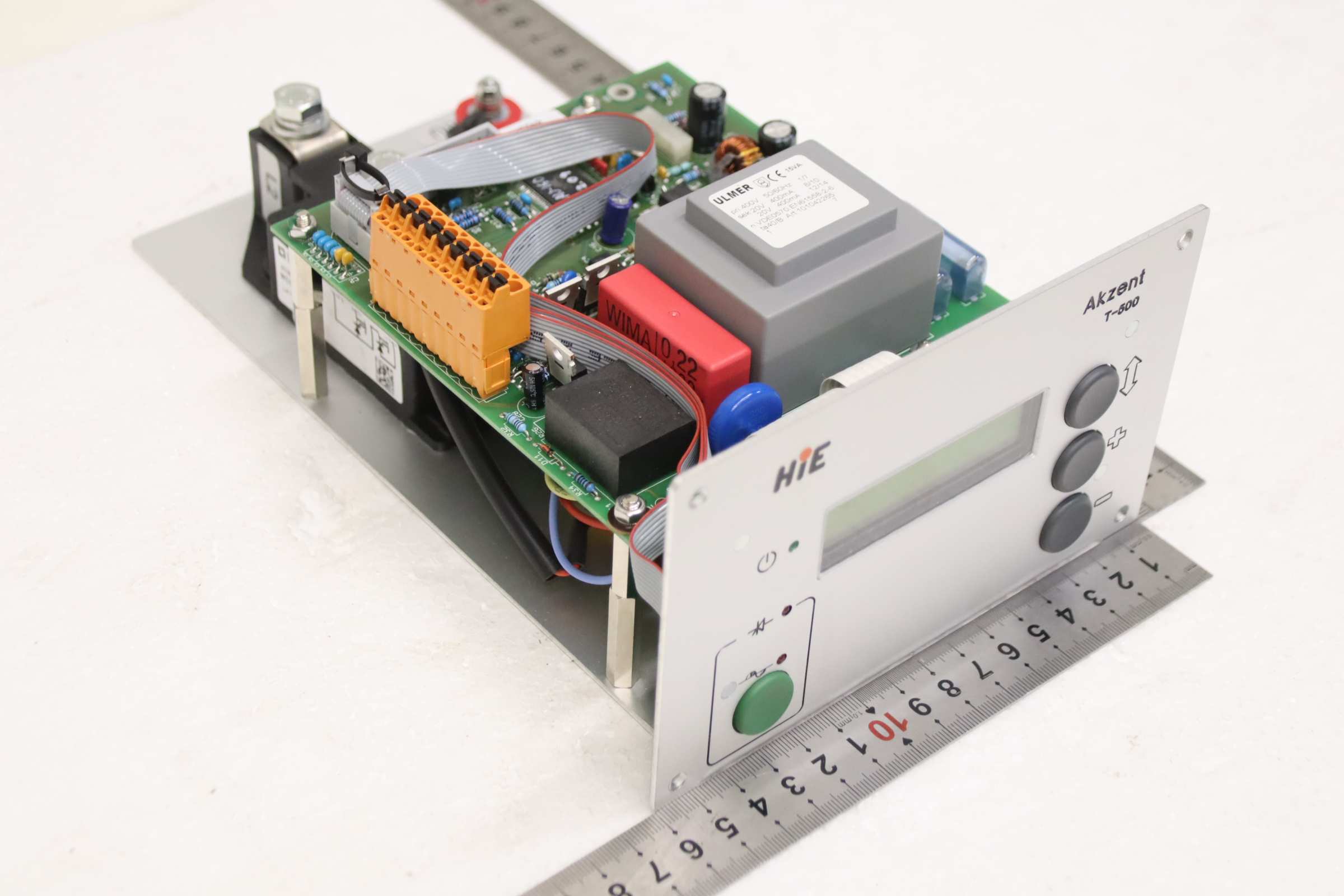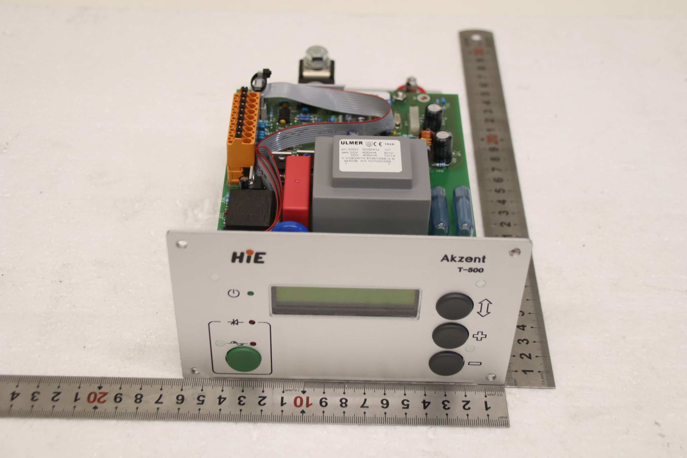 Spot welding machine, spot welding system, spot welding gun, spot and projection welding machines, AC welding current control, welding current control, welding control -Manufacturer: HiE, welding current control for spot and projection welding machines -Type: Accent T-500 / L050 -Imax: 500 A -Technical data: see photo datasheet -Dimensions: 250/160/H100 mm -Weight: 1.5 kg