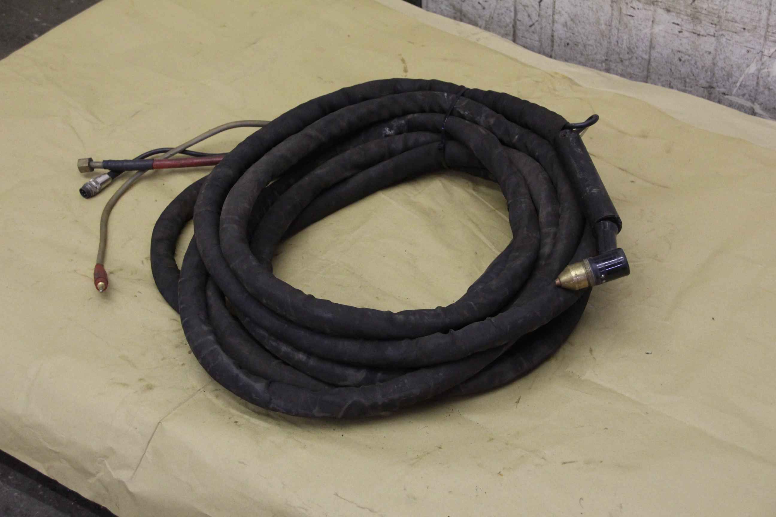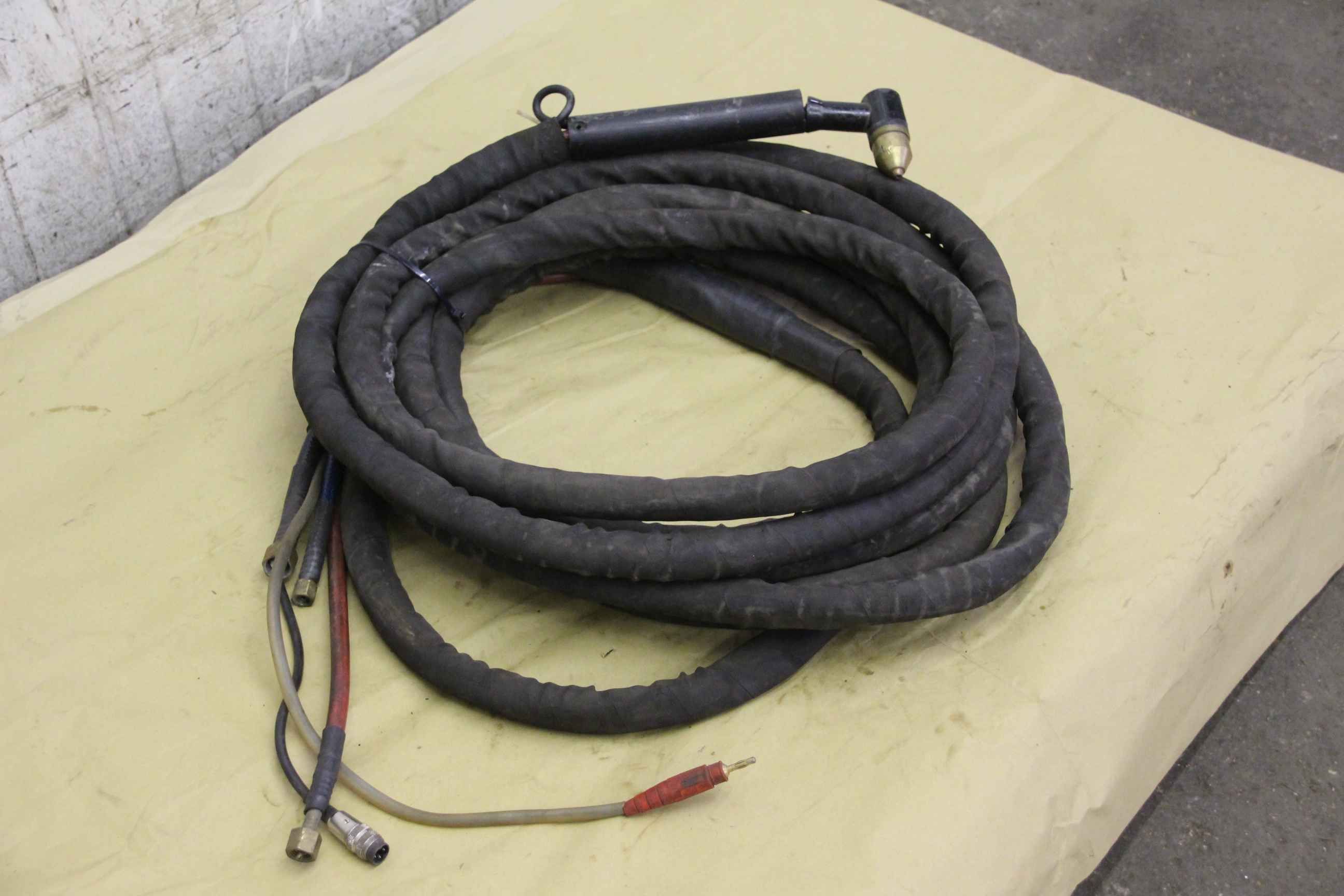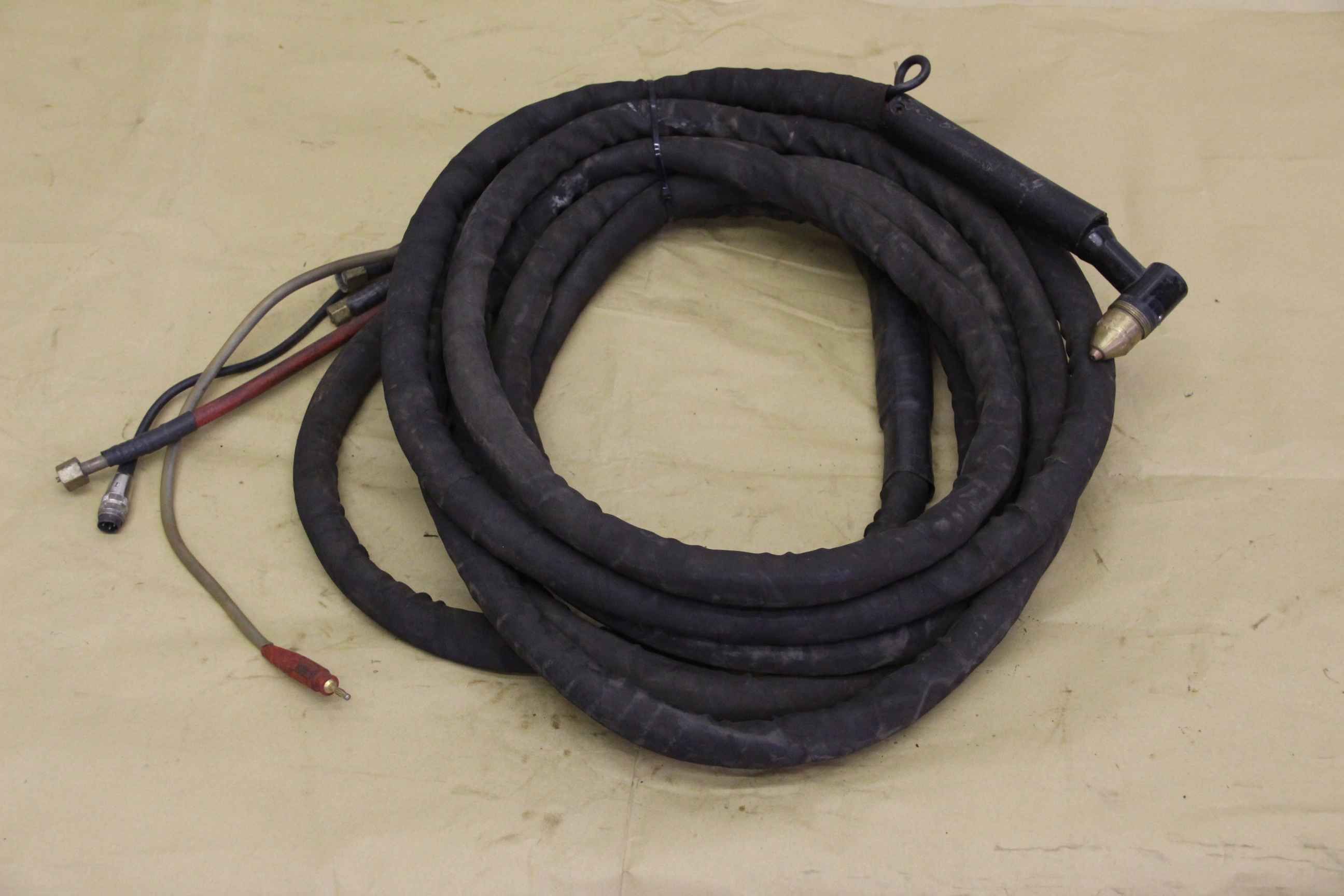 Plasma hose assembly, welding torch, MIG/MAG torch -Manufacturer: Kjellberg, Plasma machine torch hose assembly, water-cooled -Type: PerCut 100-1/O2 -Item No.: 11.835.421/56615/009 -Length: 7.0 m -Transport dimensions: Ø 570 x 170 mm -Weight: 10 kg