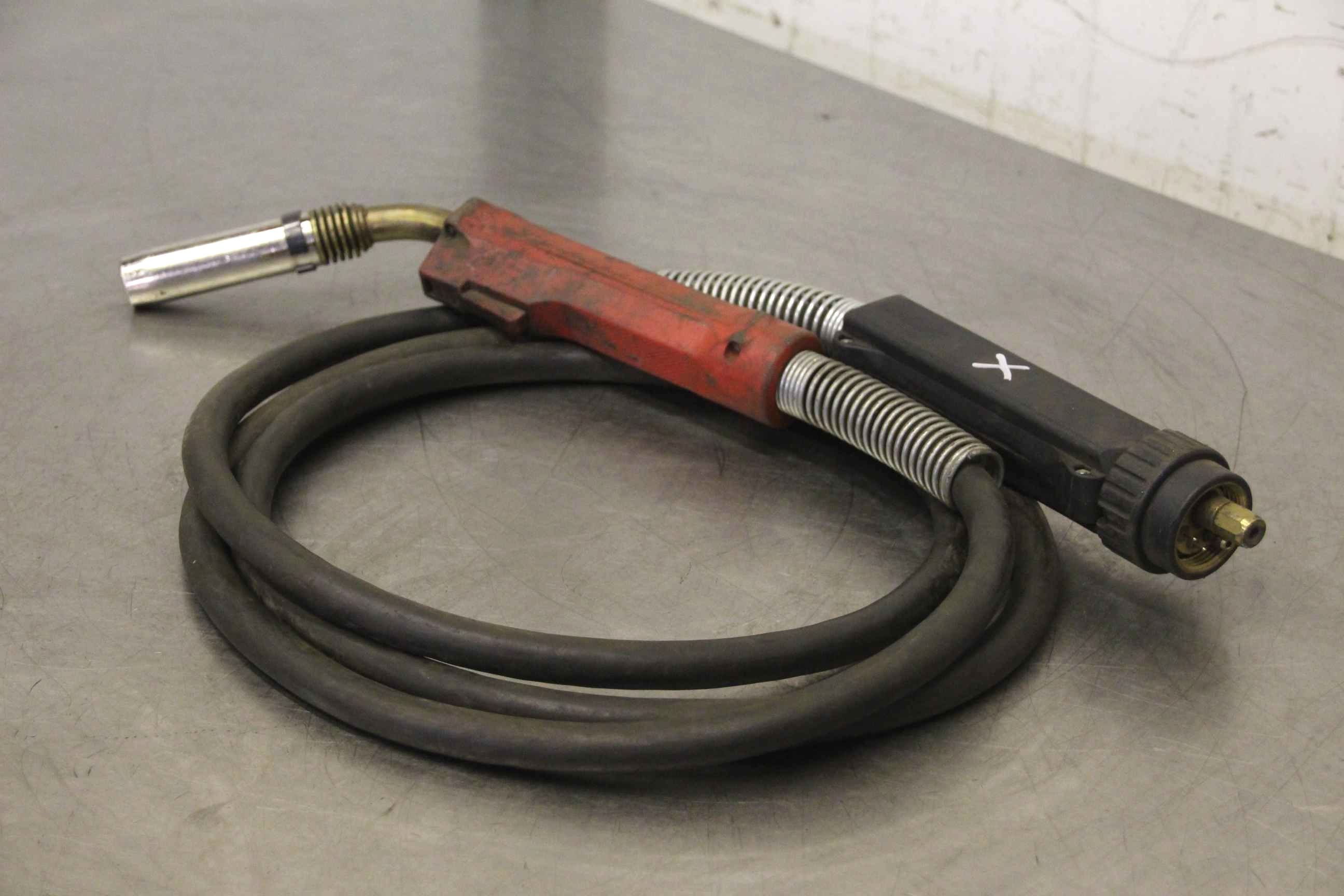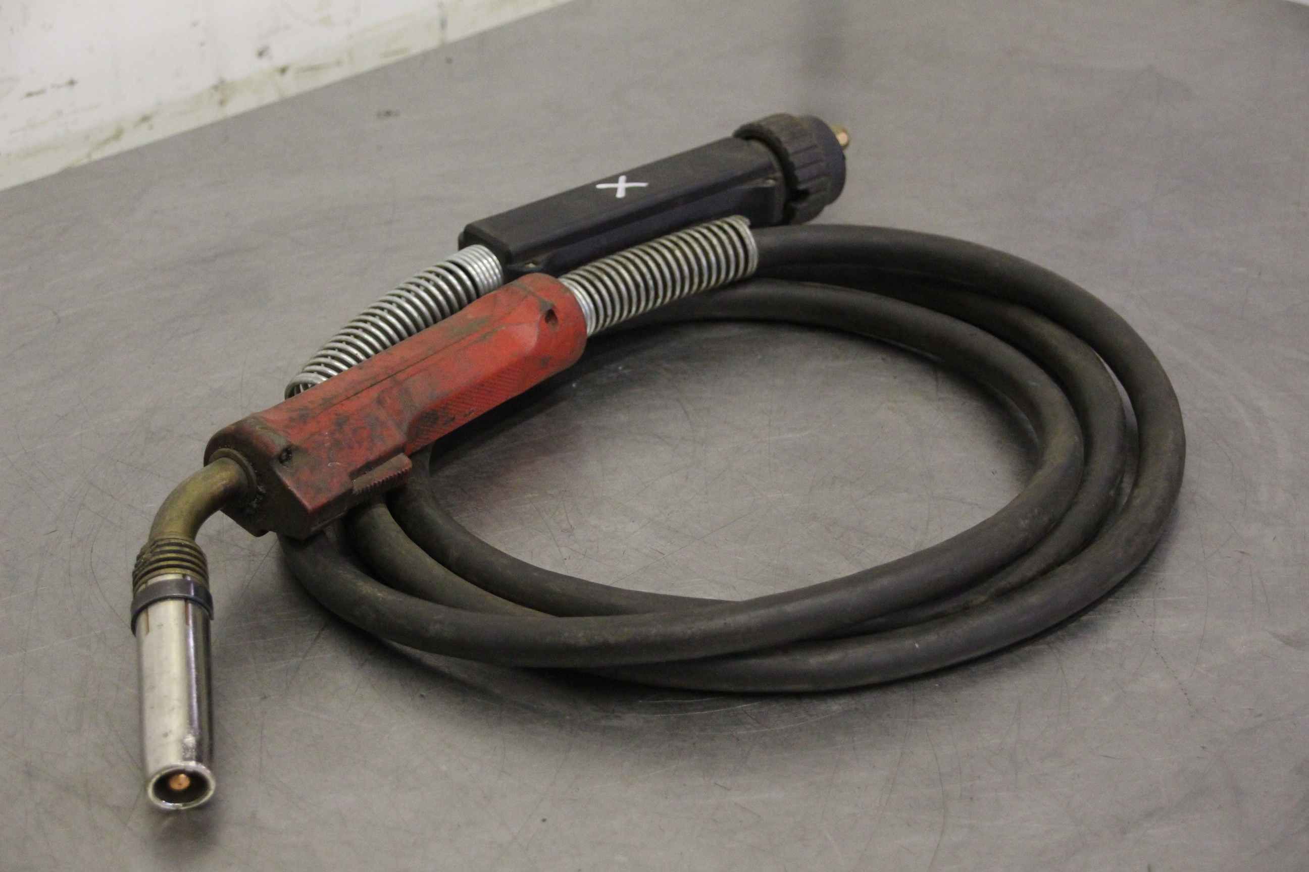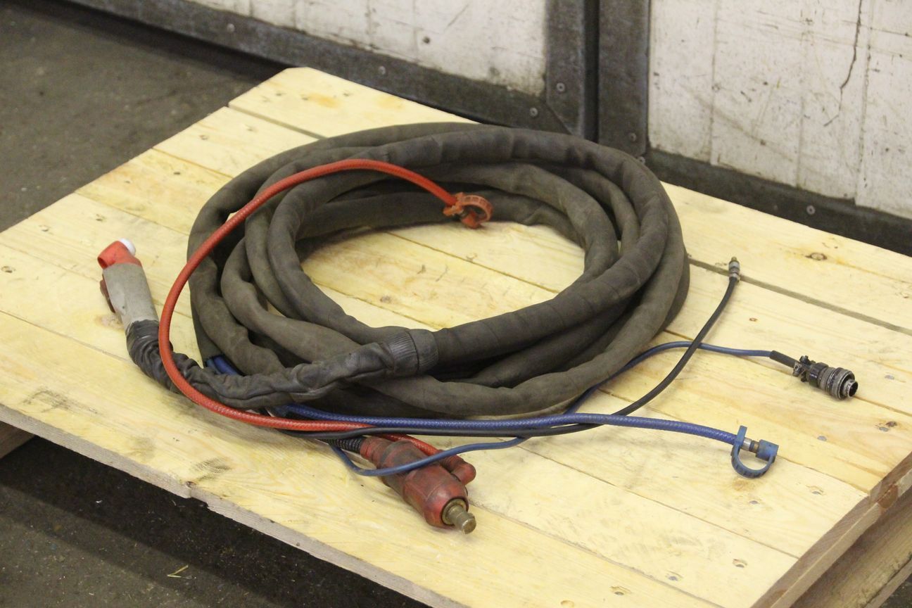 Plasma hose assembly, welding torch, MIG/MAG torch -Manufacturer: Kjellberg, Plasma machine torch hose assembly, water-cooled -Type: PerCut 100-1/O2 -Item No.: 11.835.421/56615/009 -Length: 7.0 m -Transport dimensions: Ø 570 x 170 mm -Weight: 10 kg