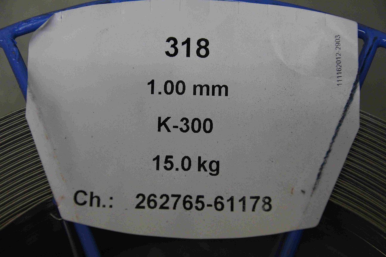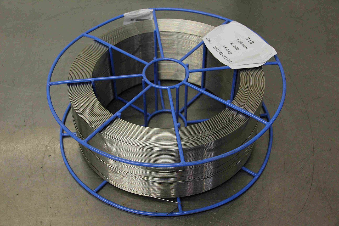 Wire electrode, welding wire, welding wire -Material: stainless steel -Shielded gas wire electrode: started roll -Type: 318 Ø 1.00 mm -Dimensions: Ø 300 / 105 mm -Weight roll: 13.8 kg