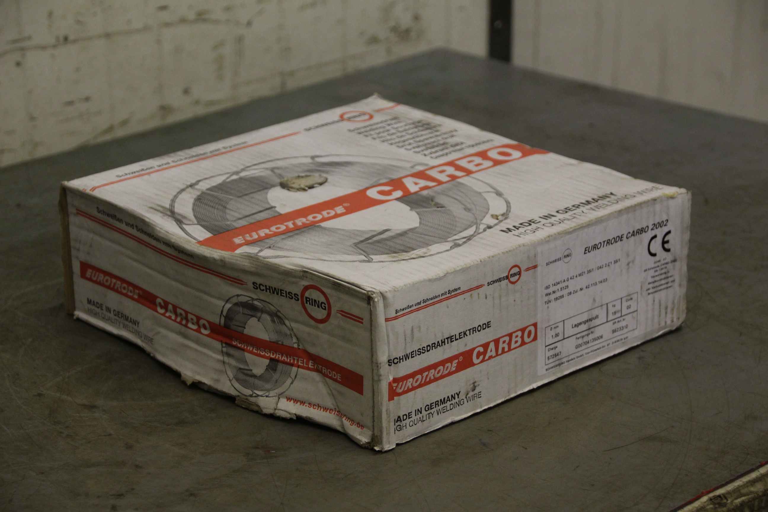 wire electrode, welding wire, welding wire -Eurotrode: Carbo 2002 -Diameter: 1.00mm -Price: per roll -Number: 3 rolls available -Dimension: O 300/100 mm -Weight per roll: 15 kg