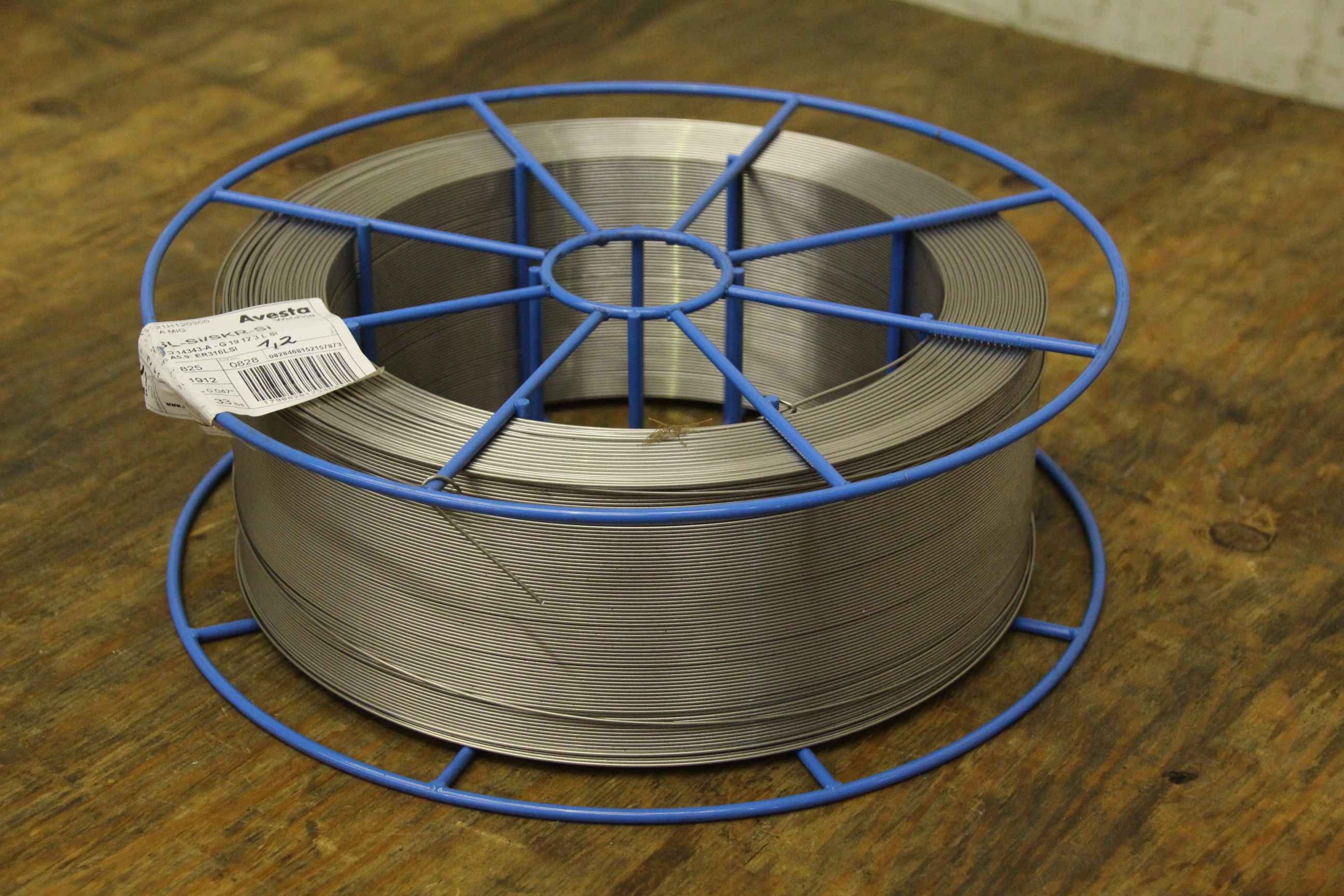 wire electrode, welding wire, welding wire -Welding wire: Avesta 904L -EN: 12072 AWS A5.9/SFA 5.9 ER385 -O: 1.00 mm -Dimension: O 300/100 mm -Weight reel: 8.9 kg