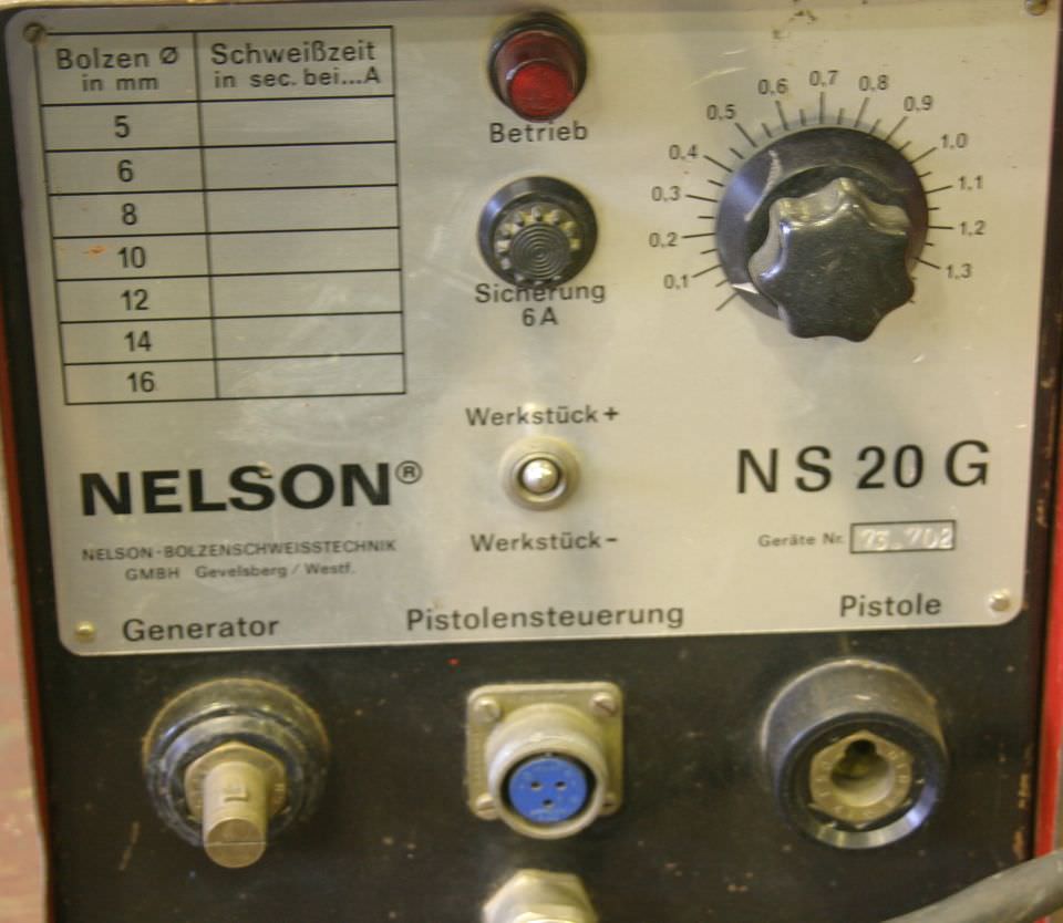 Stud welding machine, stud welding compact system, stud welding machine, stud welding -maximum current: A -without a pistol -Housing: robust -for threaded bolts: max. 10 mm -Number: 3x stud welding machines available -Price: per piece -Dimensions: 420/220/H290 mm -Weight: 14 kg