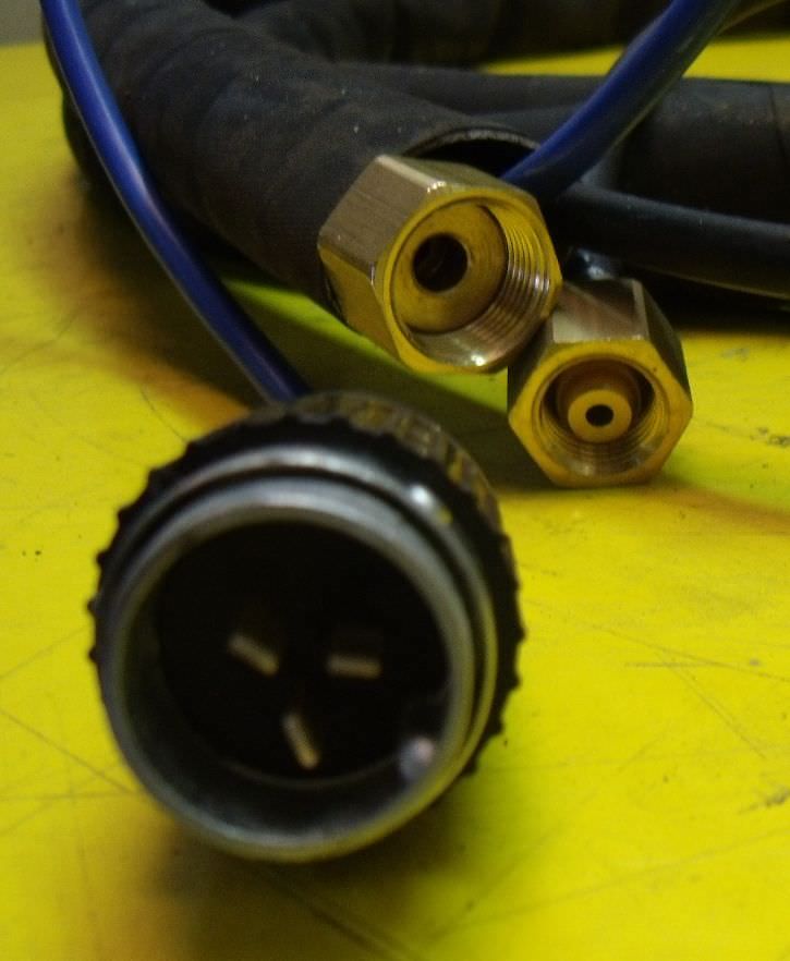 MIG/MAG hose package extension, intermediate hose package -Length: 7.0m, 7.5m -Design: Plug, air cooled -Quantity: 3x 7 m hose packages available -Quantity: 1x 7.5 m hose packages available -Price per piece -Weight: 10kg