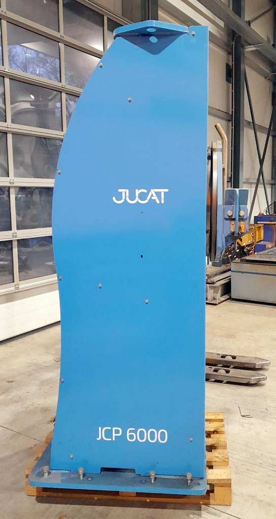 Está disponible un torneado de soldadura Jucat compuesto por dos piezas con la pieza en el centro. Diseño: sistema de 2 columnas, máxima capacidad de carga: 6000 kg, par de rotación: 800 Nm, par de inclinación: 7500 Nm, rango de elevación: 800 mm-2000 mm, velocidad de elevación: 40 mm/s, velocidad máxima: 2 rpm, diámetro de la placa de sujeción: 750 mm, presión de operación: 120 bar. Dimensiones de la máquina X/Y/Z: aprox. 2500mm/1100mm/1100mm, peso: aprox. 2x1000kg. Documentación disponible. Es posible realizar una inspección in situ.