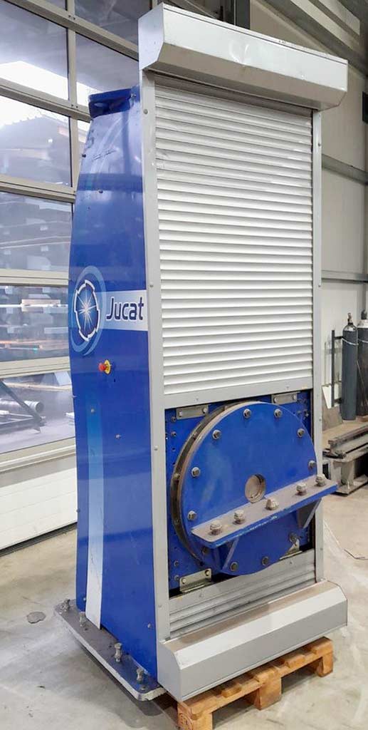 Está disponible un dispositivo de torneado de soldadura Jucat, compuesto por dos piezas con la pieza en el centro. Diseño: sistema de 2 columnas, máxima capacidad de carga: 6000 kg, par de rotación: 800 Nm, par de inclinación: 7500 Nm, rango de elevación: 800 mm-2000 mm, velocidad de elevación: 40 mm/s, velocidad máxima de rotación: 2 rpm, diámetro de la placa de sujeción: 750 mm, presión de funcionamiento: 120 bar. Dimensiones de la máquina X/Y/Z: aprox. 2500mm/1100mm/1100mm, peso: aprox. 2x1000kg. Sin persianas. Documentación disponible. Es posible realizar una inspección in situ.