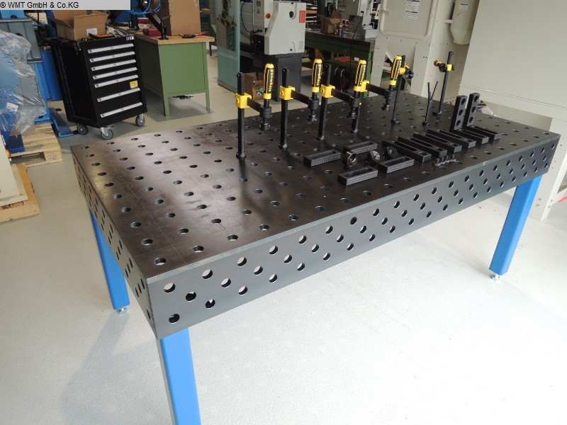 table length: 2000 mmtable width: 1000 mmtable height: 900 mmtable load: 3000 Kgweight of the machine ca.: 0,45 tdimensions: 2,0 x 1,0 x 0,9 mWelding table / hole table:Hole diameter: 28.3mmThe table is made of 15mm thick, high-alloyed, plasma-nitrided steel S355J2 + N(St 52/3)Plasma nitriding provides a hard surface layer.height adjustable from approx. 880 - 980mmBottom ribbed for reinforcement.including ground storageAccessories optional The data for this ad was created with ModulMWS - the software solution of LogoTech oHG.