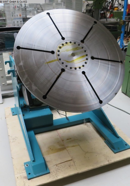 table diameter: 2000 mmtable load: 10,0 tswivelling range: 0 - 135 Gradturning speeds: 0,05 - 0,5 U/minmax. torque on the faceplate: 20000 Nmtable pass: 200 mmwelding current: 1000 Amperetotal power requirement: 3,0 + 4,0 kWweight of the machine ca.: tELDING TABLE WITH LARGE THROUGH BORE• Self-locking gearbox, no pre- or after-run with eccentric load.• Electronic components from Siemens and Schneider.• Frequency-controlled, very accurate speed control.• Turntable with large through hole and T-slots.• High stability through a clever construction.• CE certificate.• Very good price / quality ratio.• The D-TLP series comes with remote control and foot pedal (left / right).No original pictures. Design but identical.The data for this ad was created with ModulMWS - the software solution of LogoTech oHG.