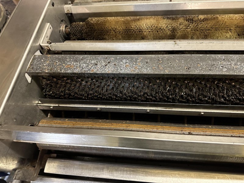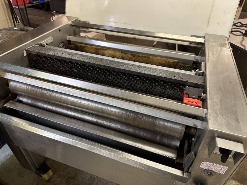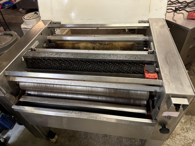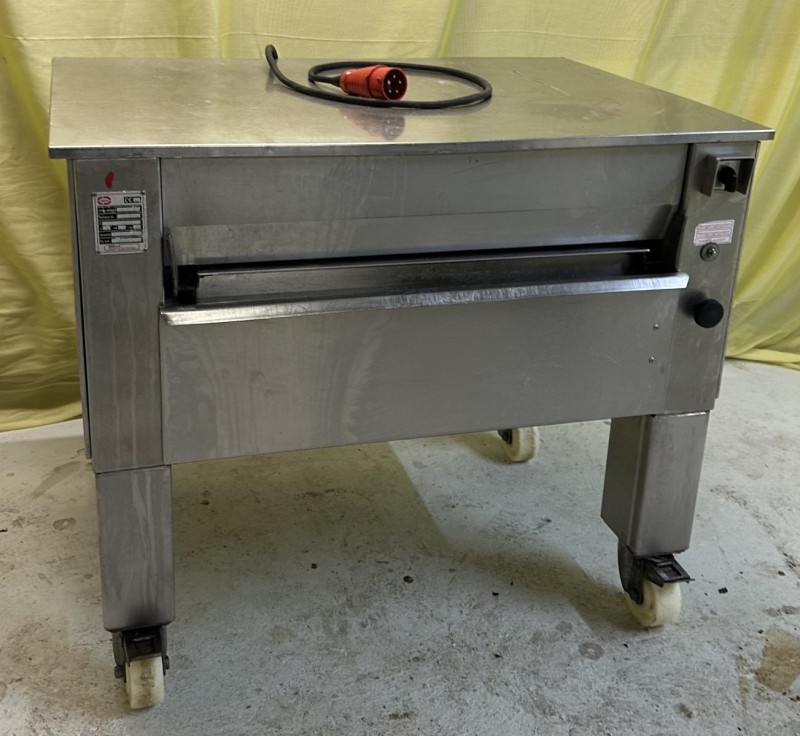Fabricante: JerosTipo: 5015/828400Voltios 50Hz 1,5kW 4,4AZ para limpiar bandejas de horno de 2 filos y perforadas. Para ancho de lámina 78 cm, chasis completamente de acero inoxidable, cajón para suciedad de acero inoxidable. Bandejas de 78x58 cm de ancho en rollos. Detalles ver imagen