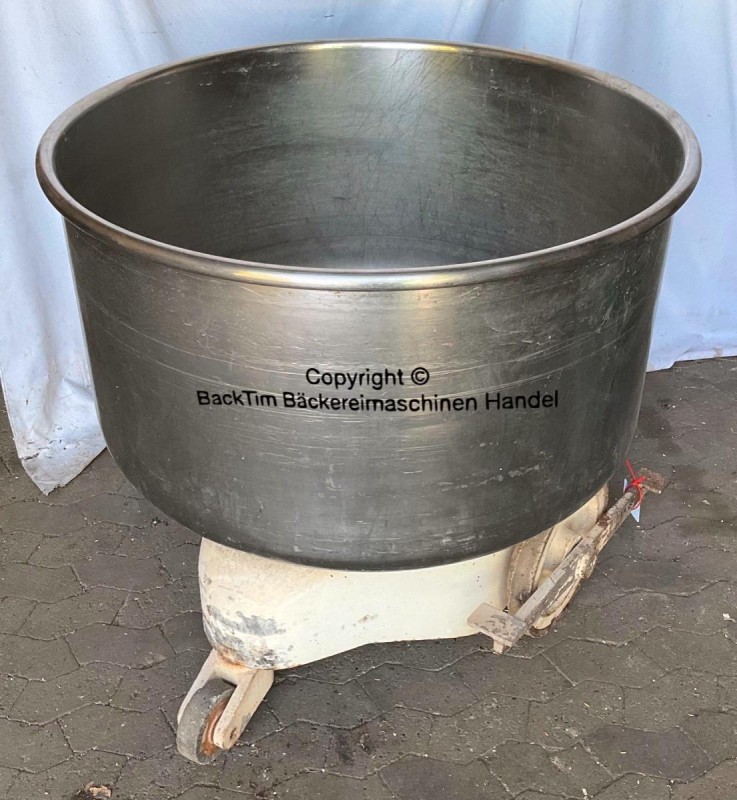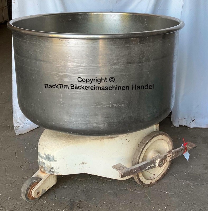 caldera extensible usada para W&, P DK 150 de acero inoxidable ââ Descripción del producto ââ" Fabricante: Werner & Pfleiderer âœ" Tipo: DK 150 âœ" Estado: usado, condición de panadería - debe limpiarse a fondo antes de usarse ââ" La caldera está integrada en un carro ââ" El tranvía es fácil de accionar y rotar ââ" La caldera puede girarse en todas las direcciones del carro ââ" Material del carro: Metal âœ" Material caldero: acero inoxidable âœ" para máximo 240 kg de masa âœ" interior â ̓ interior â ̃ del caldero: 98 cm, 56 cm de profundidad âœ" exterior del caldero: 104 cm, 103 cm de alto âœ" Stock: 8 piezas