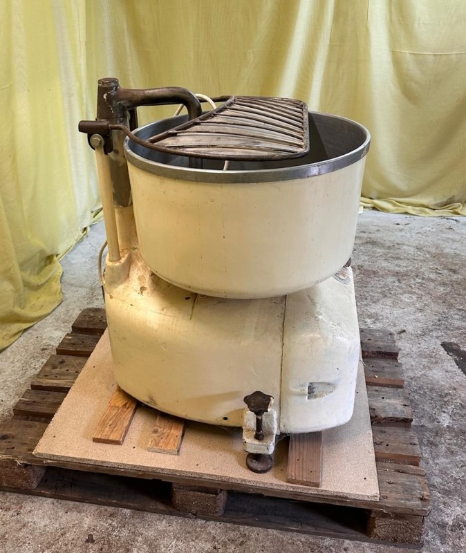 Mezcladora de espiral DIOSNA SP 80 D Fabricante: DIOSNA Tipo: SP 80D para hasta 80 kg de masa (aprox. 50 kg de harina) Control manual 2 relojes y 2 velocidades con tetera de acero inoxidable de alta calidad y amasado de acero inoxidable con cubierta protectora Dimensiones: ancho 68 cm, profundidad 105 cm, altura 120 cm Peso: aprox. 400 kg Potencia del motor: 380 V, 5,2 Kw, 12 A Detalles ver fotos.