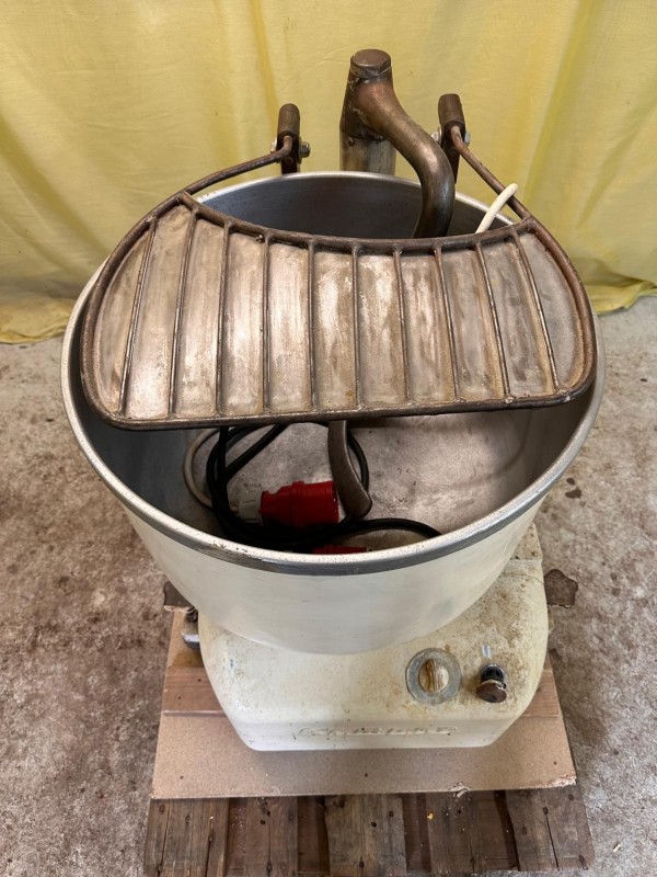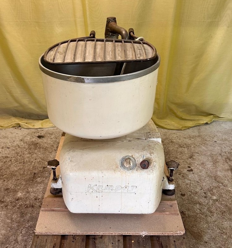 Amasadora de levantamiento / Máquina de amasar usada Kemper Amasadora de elevación / Máquina de amasar Fabricante de la máquina Kemper: Kemper Material: Caldera hecha de ALU, brazo de amasado galvanizado Dimensiones de la tetera: Q 59 cm de altura 35 cm Estado: usado, funcional Se pueden accionar dos velocidades con rodillos con 2 frenos Detalles ver imágenes.