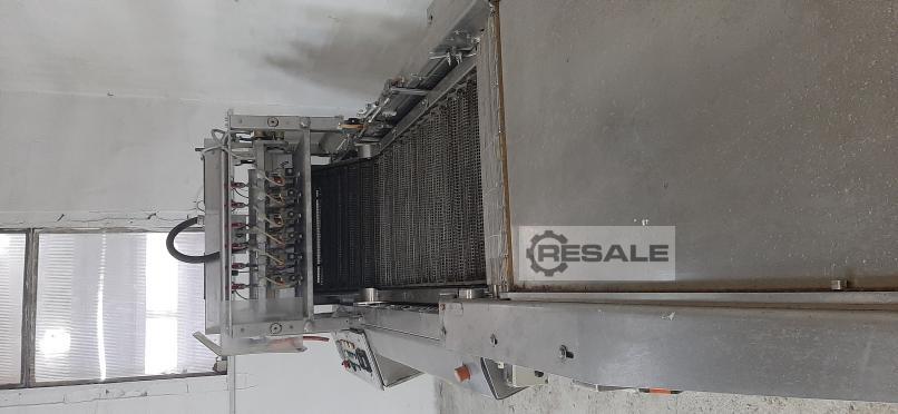 Acciones UG6311 Línea de segunda mano para la producción de caramelos de caramelo, sabor mono. Line puede producir caramelos de sabor a fruta, caramelos de menta o leche (a base de grasa). Salida de notificación de hasta 468 kg/h. Línea de conso: - Sección de preparación de masa de caramelo - incluye la olla de caramelo TC&C Process designers 24inch Schlagenkocher, fabricado por Snelders, nuevo 1997. Salida de trabajo de hasta 1000 kg/h. - Winkler & Dunnebier formando línea tipo 163.04, nueva 1997. Salida reportada de hasta 486 kg/h. La sección de formación tiene dimensiones: 920 mm x 280 mm x 40 mm. La formación muere en movimiento - 118 uds. Número de caramelos por molde: 240 uds. La máquina funciona con una velocidad de hasta 6,5 moldes por minuto. Dimensiones de trabajo: L 11,85 m x W 1,9 m x H 2,83 m. Producto final descargado a una altura de 850-950 mm. Consumo de ...