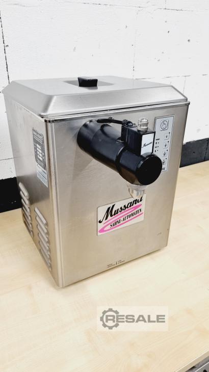 Máquina de crema batida Máquina expendedora de nata montada Mussana Mueble de sobremesa con refrigeración Acero inoxidable para aprox. 3-5 litros de nata cruda con dispositivo de porcionado Procesamiento máx. 50 litros de nata/min Conexión 220V, listo para enchufar Dispositivo usado limpiado 3 meses de garantía ¡Más máquinas de pastelería en stock!