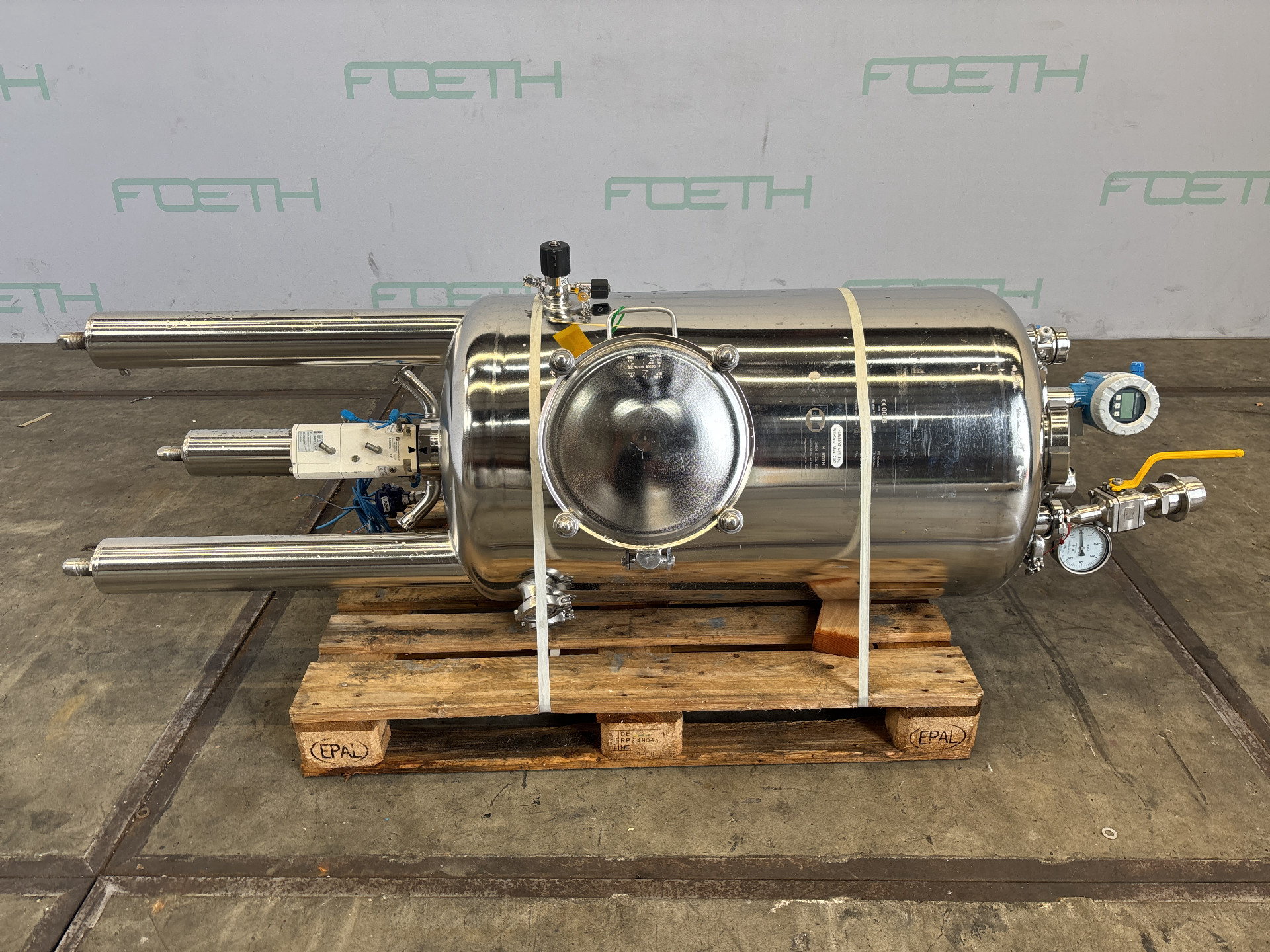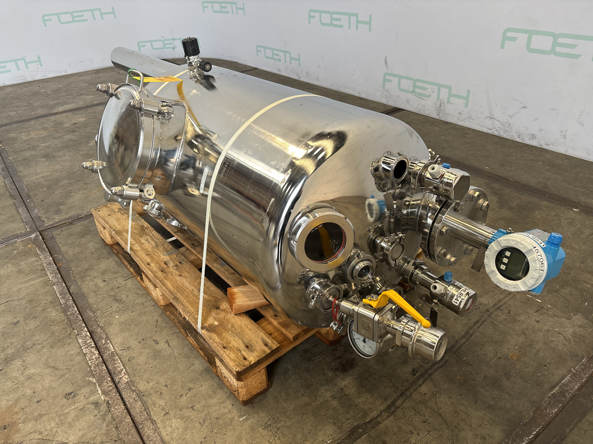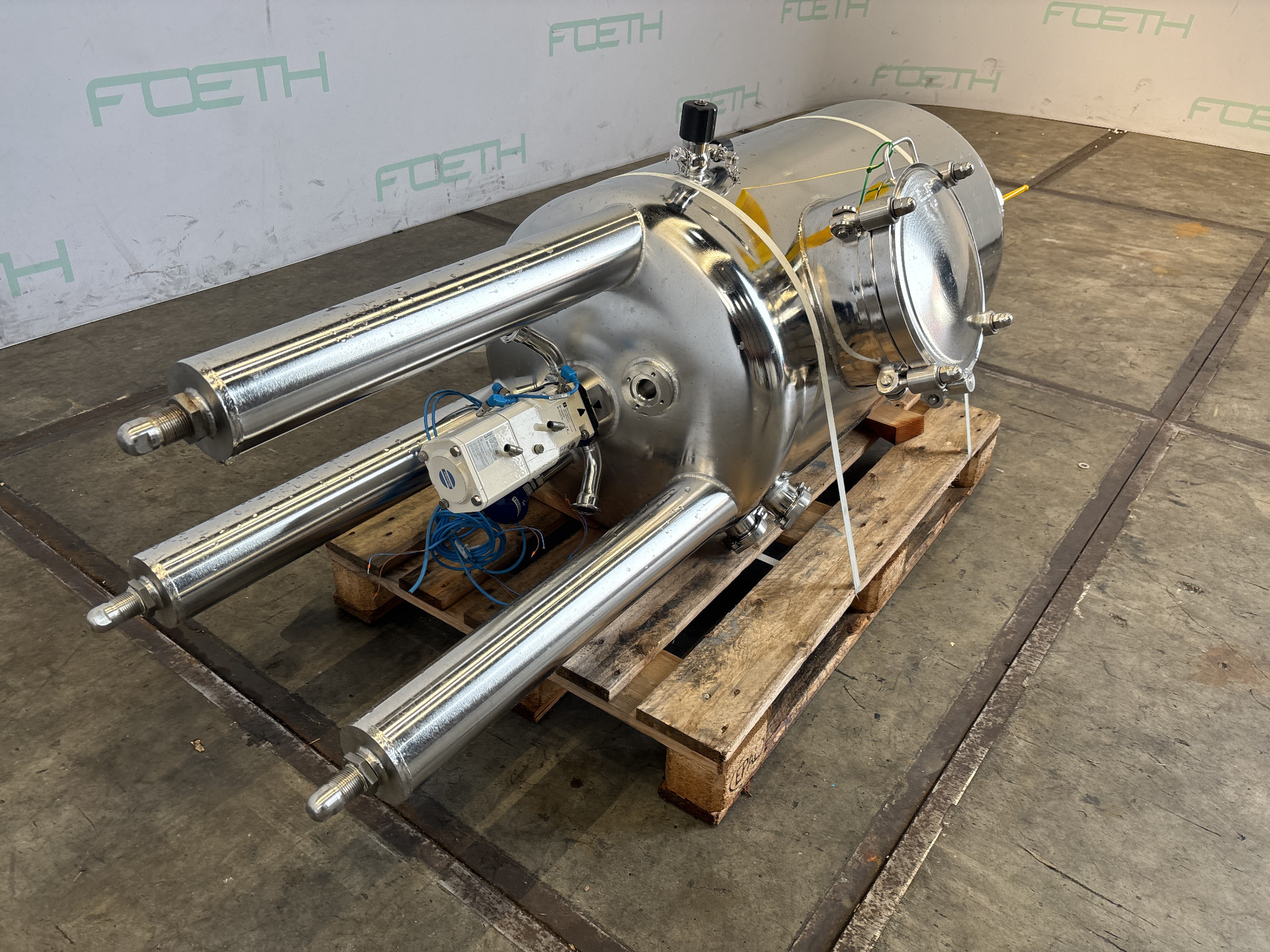 General SKU327X694 MakeM. Roth LocationBarneveld CEcheck Type278 l. Pressure Working pressure4 Bar Vacuum possiblecheck Number of vertical pressure tanks1 Main Features MaterialStainless steel Volume278 Ltr. Pressure4 Bar Vacuumcheck Specified Features - Pressure vessel MaterialStainless steel 1.4404 (316L) Capacity278 l. Vessel sizesø 600 x 1000 mm Dished topcheck Dished bottomcheck Manholecheck side manhole DN300 Top connectionscheck Outletcheck with pneumatic valve Max. temperature144 °C Information No.B854 Year of construction2008 Mounted on legscheck Floorspace0,80x0,80 m Total height2,20 m Weight200 kgPressure vesselsM.rothTanks > Pressure vesselsBrand > M.roth What you can expect from Foeth: -- Machine is in working condition -- At a reduced price compared to new -- Ready for shipping to any destination worldwide -- You are welcome to inspect the machine in Barneveld, The Netherlands. Please visit us in Barneveld for many more machines!