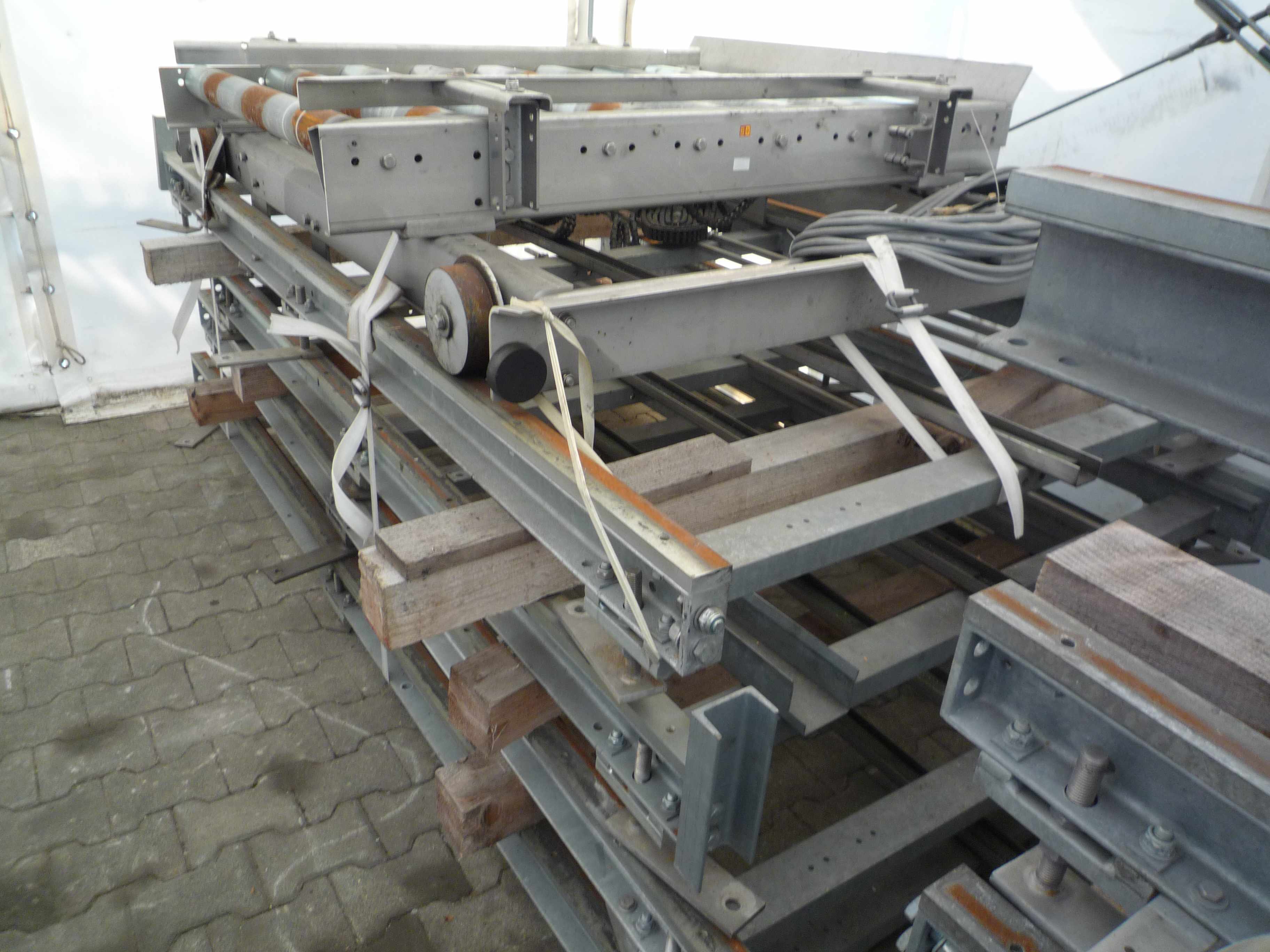 description: Type of transport chains (pitch): roller, pitch 190mm/140mm roller carriage without motor Nominal width and installation dimensions can be changed propulsion: 0,55 KW motor with brake Usable width: 1170 mm transport size: 2960 x 1888 x 1300 mm Installation dimension: 10400 x 1580 x 650 mm weight (m) [kg]: 1500 Besides buying and selling of conveyors and machines our strength lies particularly in services and project planning, as for example in rebuilding and adapting of your installation as well as in overhaul and relocation of machines. You have a first idea or even a concrete plan? It does not matter how far your project is, we support you in every phase! Or do you want to sell or market your machine? We also buy machines or provide you with a marketing concept. Ask for your individual offer or visit us in Knetzgau. Concerning bigger projects we can of cou ...