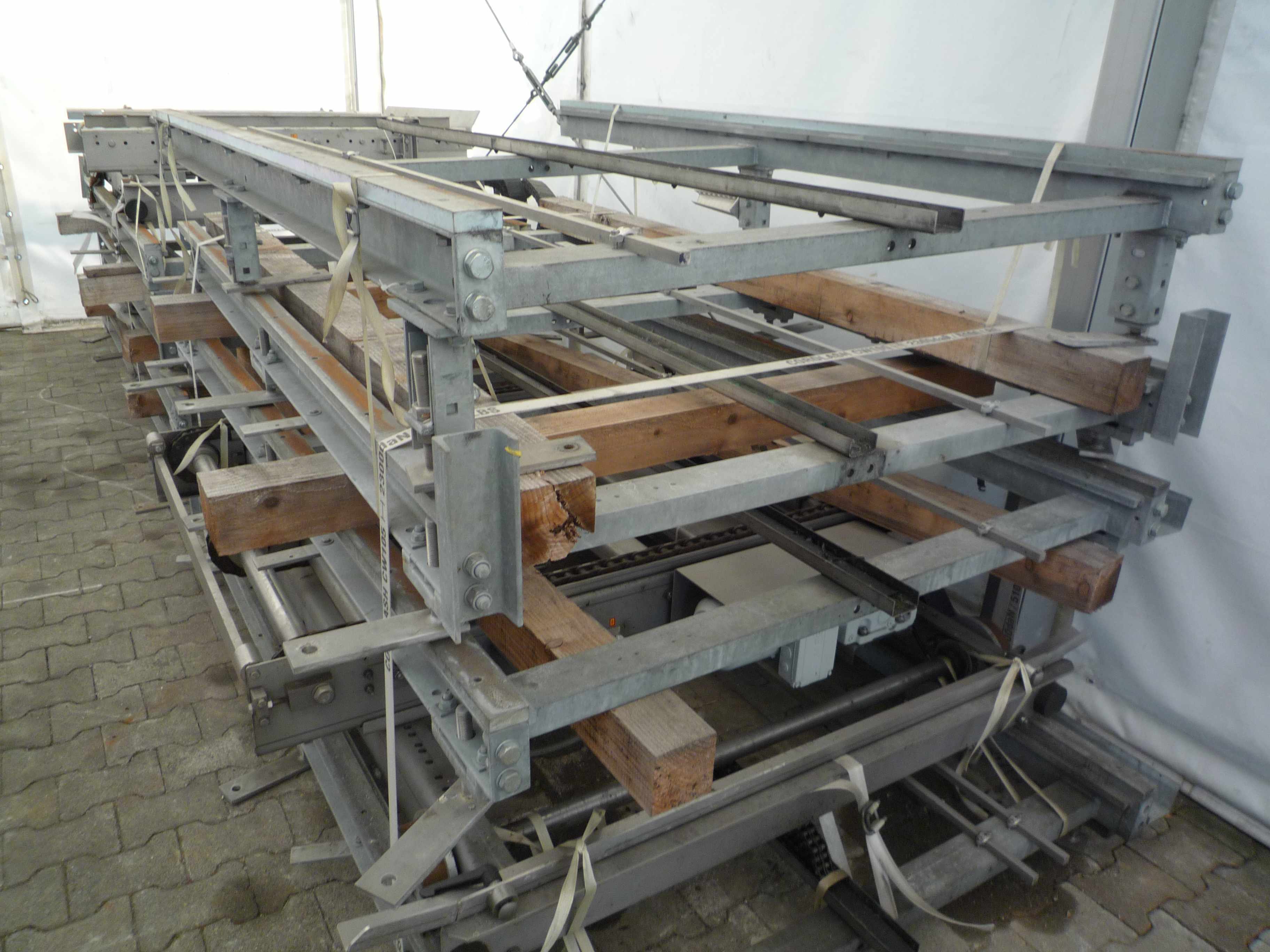 propulsion: SEW motors description: We are offering a complete empty pallet checking station incl. a GOOD pallet magazina and a BAD pallet magazine, incl. chain- and roller conveyors as well as incl. a protecting fence The placement can be adapted individually. Pallet inspector, pallet inspection machine. We do also have more conveyors on stock which we could offer you. Besides buying and selling of conveyors and machines our strength lies particularly in services and project planning, as for example in rebuilding and adapting of your installation as well as in overhaul and relocation of machines. You have a first idea or even a concrete plan? It does not matter how far your project is, we support you in every phase! Or do you want to sell or market your machine? We also buy machines or provide you with a marketing concept. Ask for your individual offer or visit us in Knetzg ...